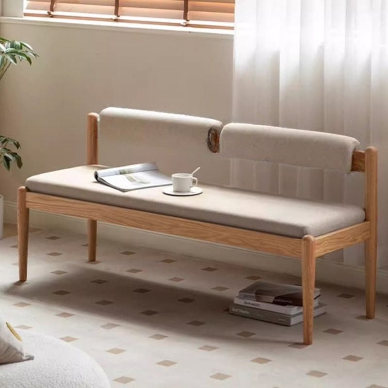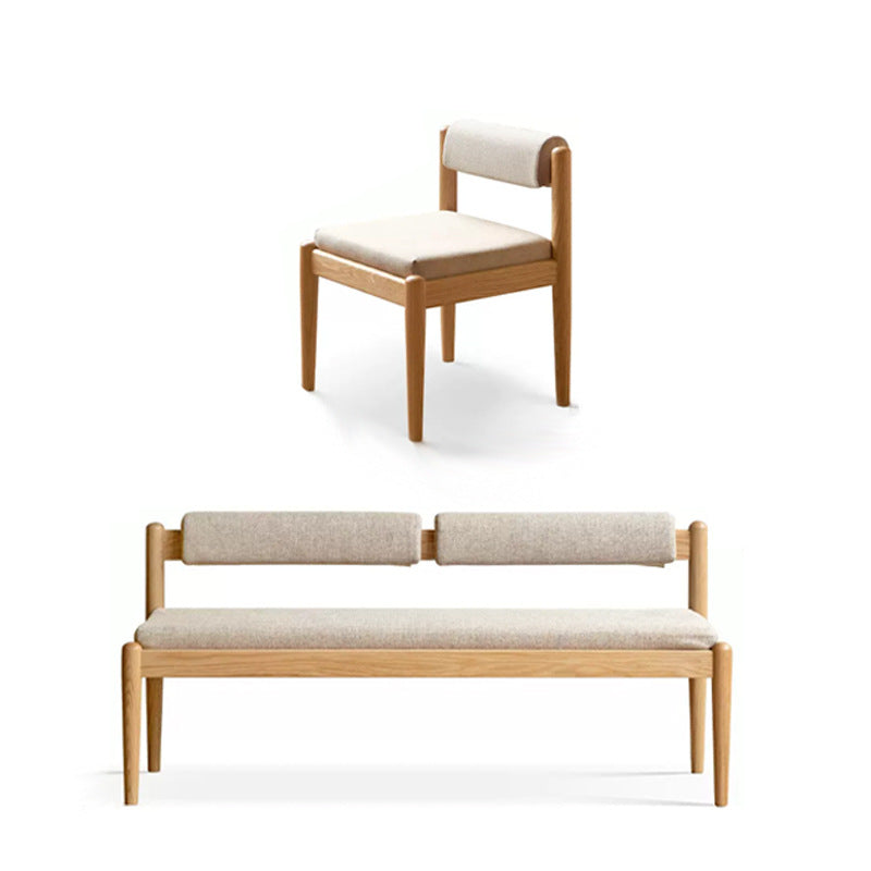 特點:選用北美進口紅橡木為材。實木長凳搭配舒適椅背,穩固耐用且線條簡約。適合餐廳、客廳或玄關使用,提供舒適坐感與良好支撐,同時展現自然質感。