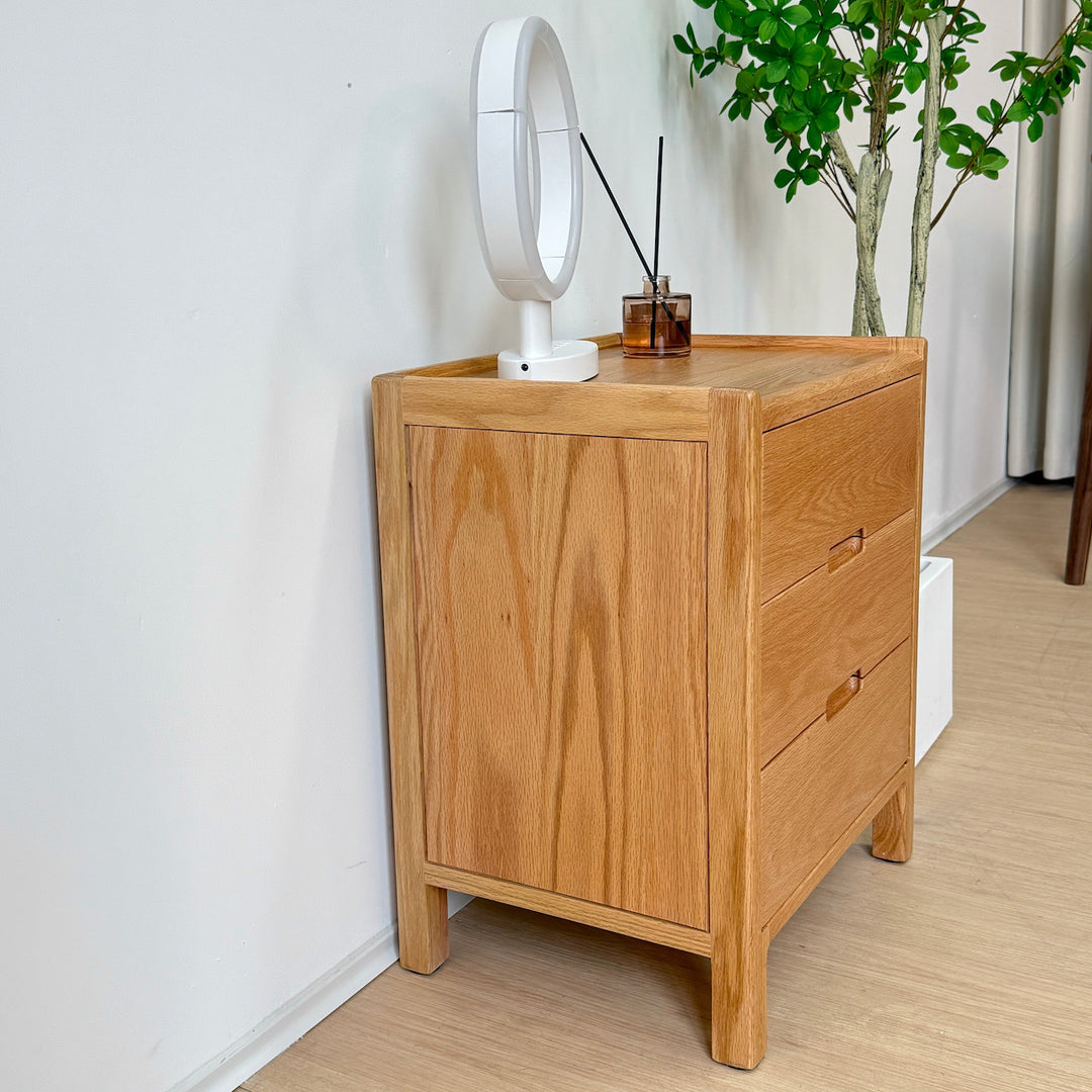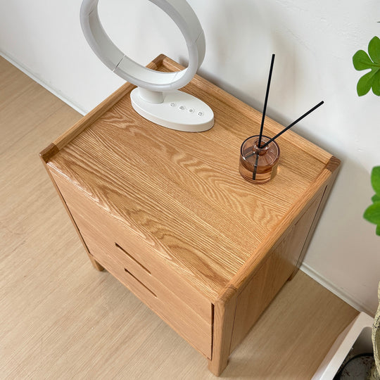 Features: Crafted from imported North American red oak, this solid wood bedside table combines elegance and practicality. Available in two styles: one with three spacious drawers and the other with two, it's perfect for different storage needs. Its classic design and sturdy solid wood add a touch of natural and stylish style to your bedroom.
