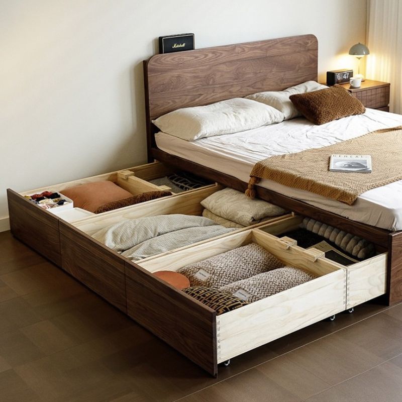 特點:選用北美進口黑胡桃木為材。這款櫃桶雙人床結合實用與舒適,提供寬敞的睡眠空間和巧妙的儲物設計。床底配有多個隱藏式儲物櫃,輕鬆收納床上用品或其他物品,保持房間整潔。簡約的現代設計與高品質材質相結合,為您的臥室帶來極致的舒適與實用性。