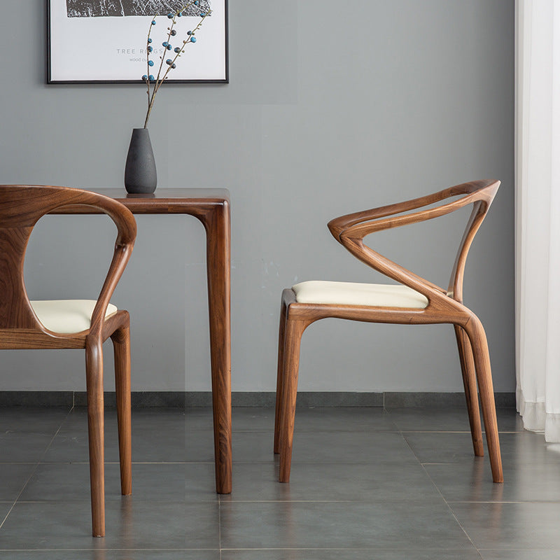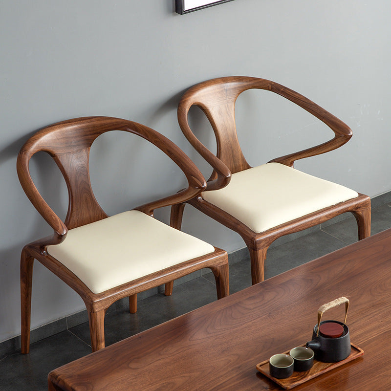 特點:選用北美進口黑胡桃木為材。這款新中式餐椅以黑胡桃木為主要材料,展現出高貴的質感和自然的木紋紋理。椅子的座面採用真皮軟墊,為您提供極致的坐姿舒適度,長時間坐著也不會感到累。此外,個性化的扶手設計不僅提供了額外的支撐,還為椅子增添了獨特的風格。這款新中式餐椅結合了優雅和功能性,為您的餐廳或用餐區域增添了高雅的氛圍和舒適的座椅體驗。