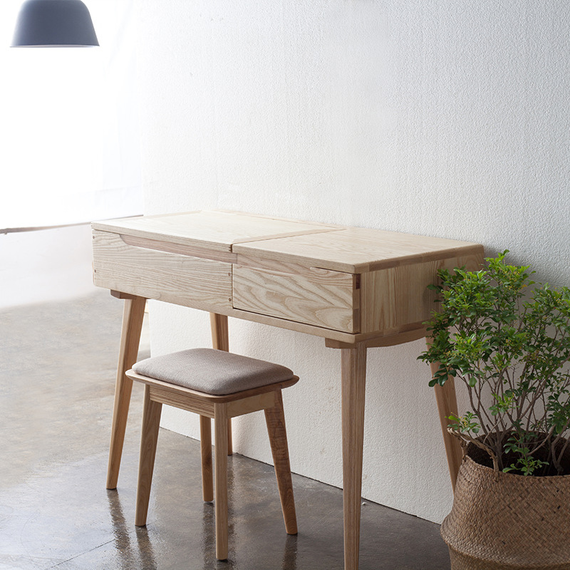 特點:選用北美進口白蠟木為材。其木質表面呈現出精緻的白蠟木紋理,質感柔和且具有自然的美感。梳妝台上設有多個抽屜和鏡子,提供了充足的存儲空間和方便的化妝環境。它是一個迷人的傢俱,將為您的臥室增添優雅和功能性。