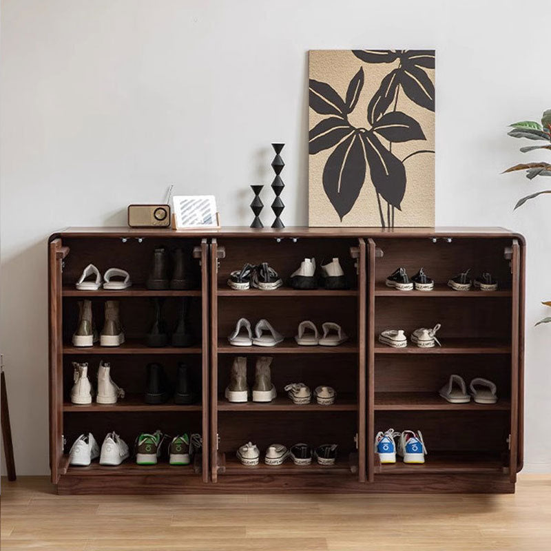 特點:選用北美進口黑胡桃木為材。這款實用鞋櫃提供4門與6門款式選擇,每格設計可輕鬆存放兩對鞋。附有可調節隔板,靈活適應不同尺寸鞋類的收納需求,簡潔的設計不僅節省空間,也為您的家居環境帶來整潔與序。