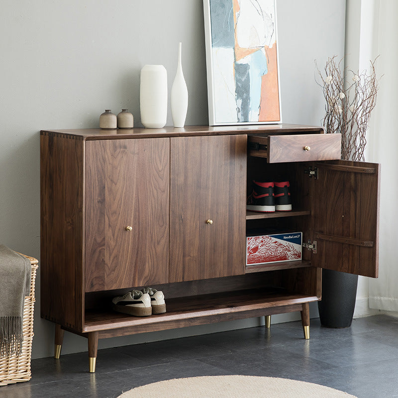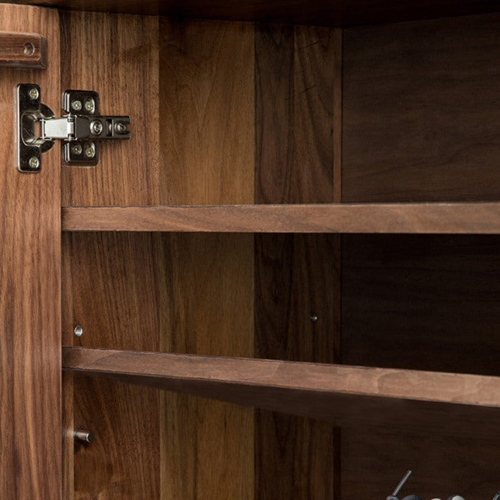 特點:選用北美進口黑胡桃木為材。橫隔板高低可以調節,適合不同的需要,擺放不同季節高度不同的鞋。產品表面含天然木蠟油,充分地保護木材。