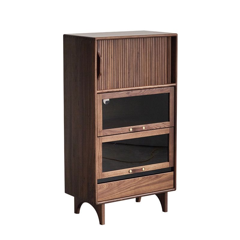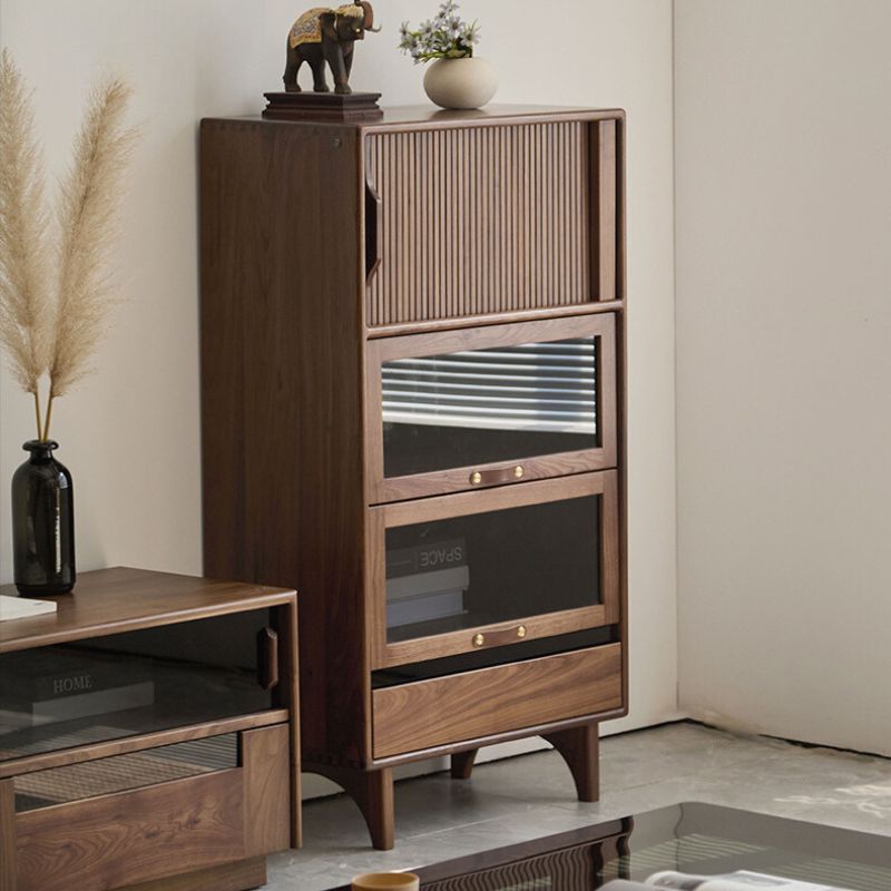 Features: Made of black walnut imported from North America. This minimalist storage cabinet offers ample storage space, making it easy to organize a variety of items. Its multi-layered compartments are perfect for storing clothes, books, documents, or household items in your living room, bedroom, or office. Made of durable materials, it's sturdy and reliable, keeping your space neat and organized.