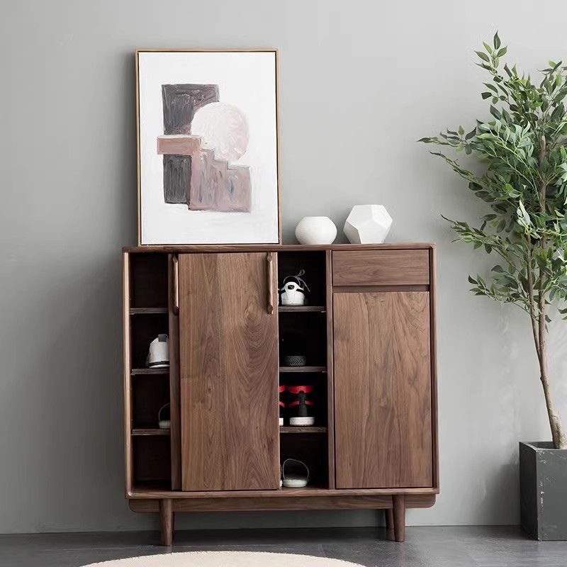 Features: Made of black walnut imported from North America. This shoe cabinet has a simple, modern design that suits any home decor style. The high-quality material structure is sturdy and durable, and the well-organized interior space can accommodate multiple pairs of shoes and keep them neat and organized.
