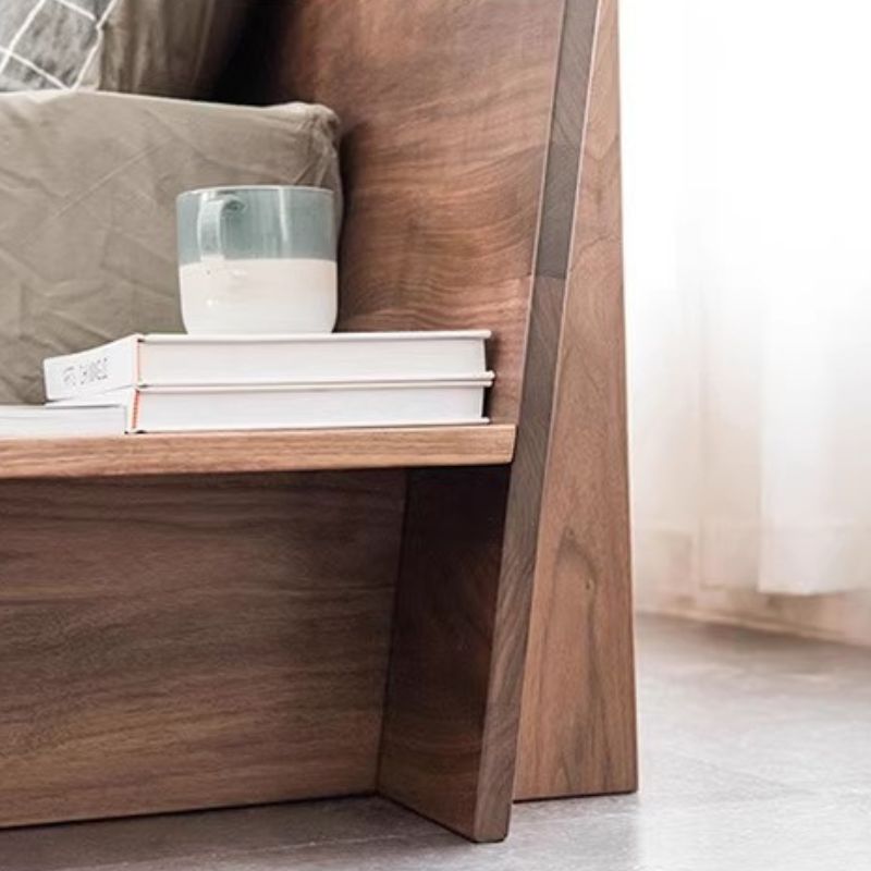Features: Made of black walnut imported from North America. This tatami bed features a simple design and excellent practicality. The headboard features storage for small items like phones and books, making them easily accessible. There's also storage space beside the bed for everyday items, saving space. It easily fits into any bedroom, creating a comfortable and practical home environment.