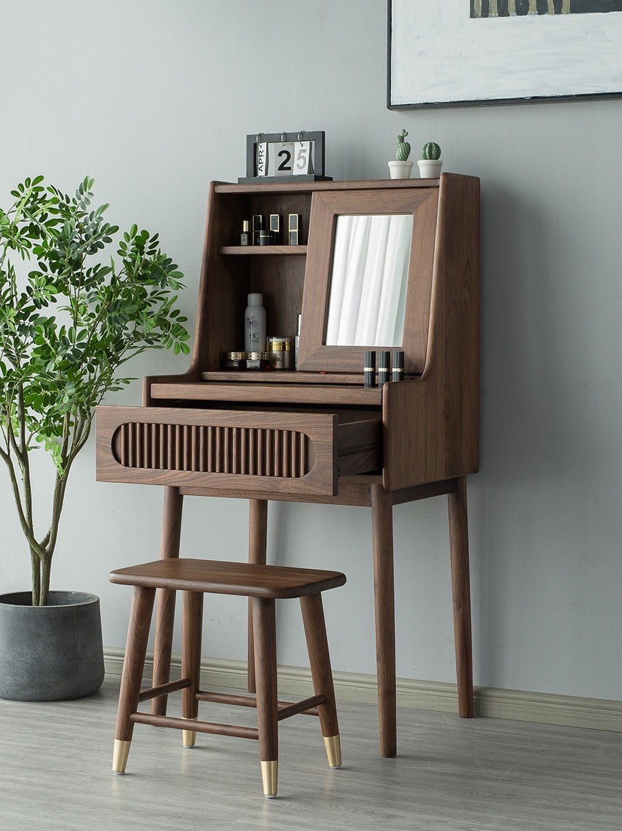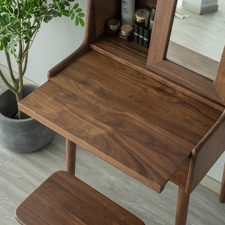 Features: Made of imported black walnut from North America. The top of the dressing table is stretchable.