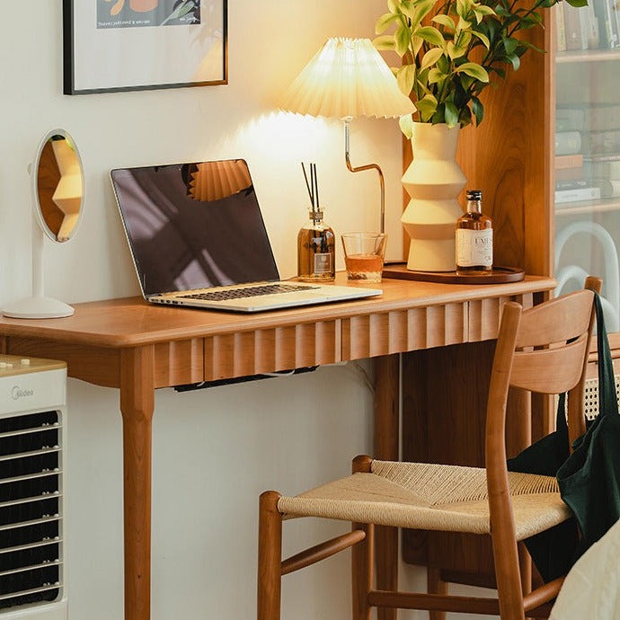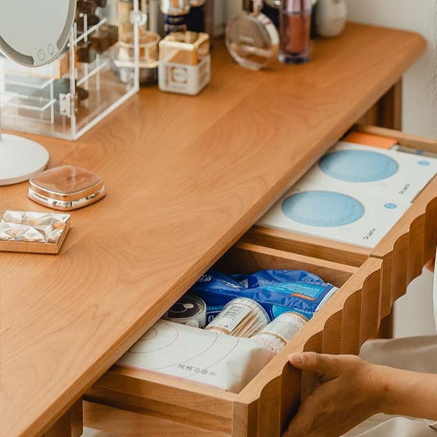 Features: Made from imported North American cherry wood. This wood has a smooth, delicate surface and beautiful patterns. It can be used as a desk or dressing table.