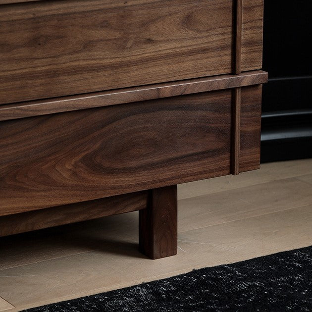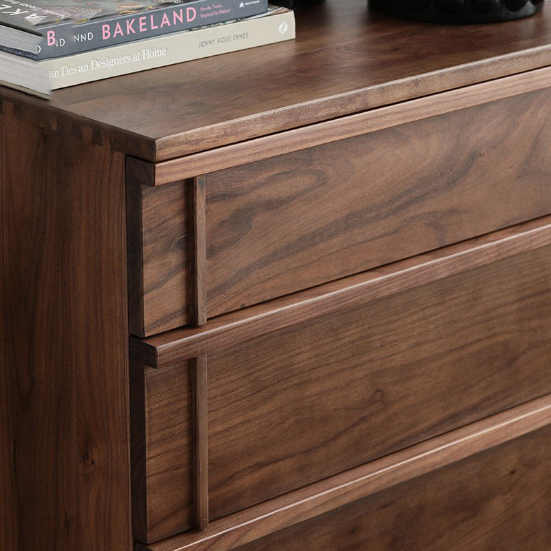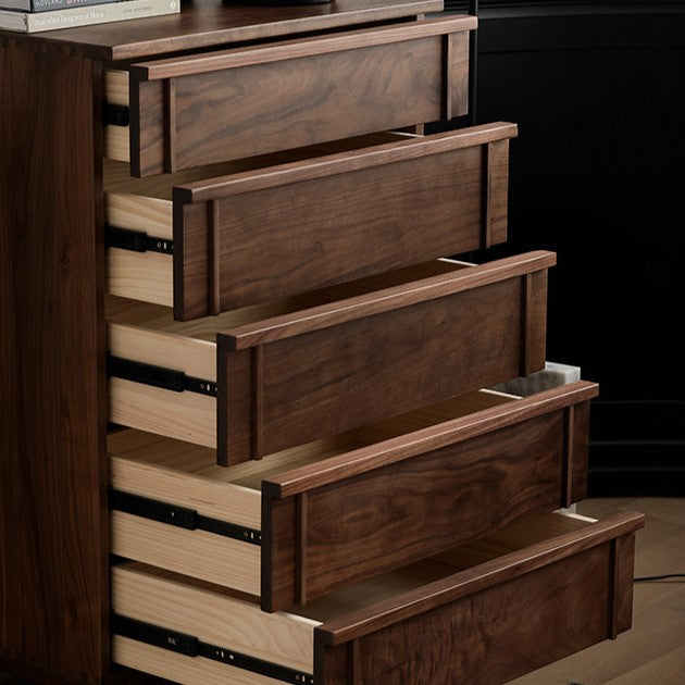 Features: Crafted from imported North American black walnut, this chest of drawers is a sophisticated and practical piece of storage furniture. Its unique five-drawer design provides ample storage space for a wide variety of items. Its sturdy construction and high-quality wood ensure durability. Its minimalist, modern design blends practicality and aesthetics, making it an ideal choice for creating a clutter-free space.