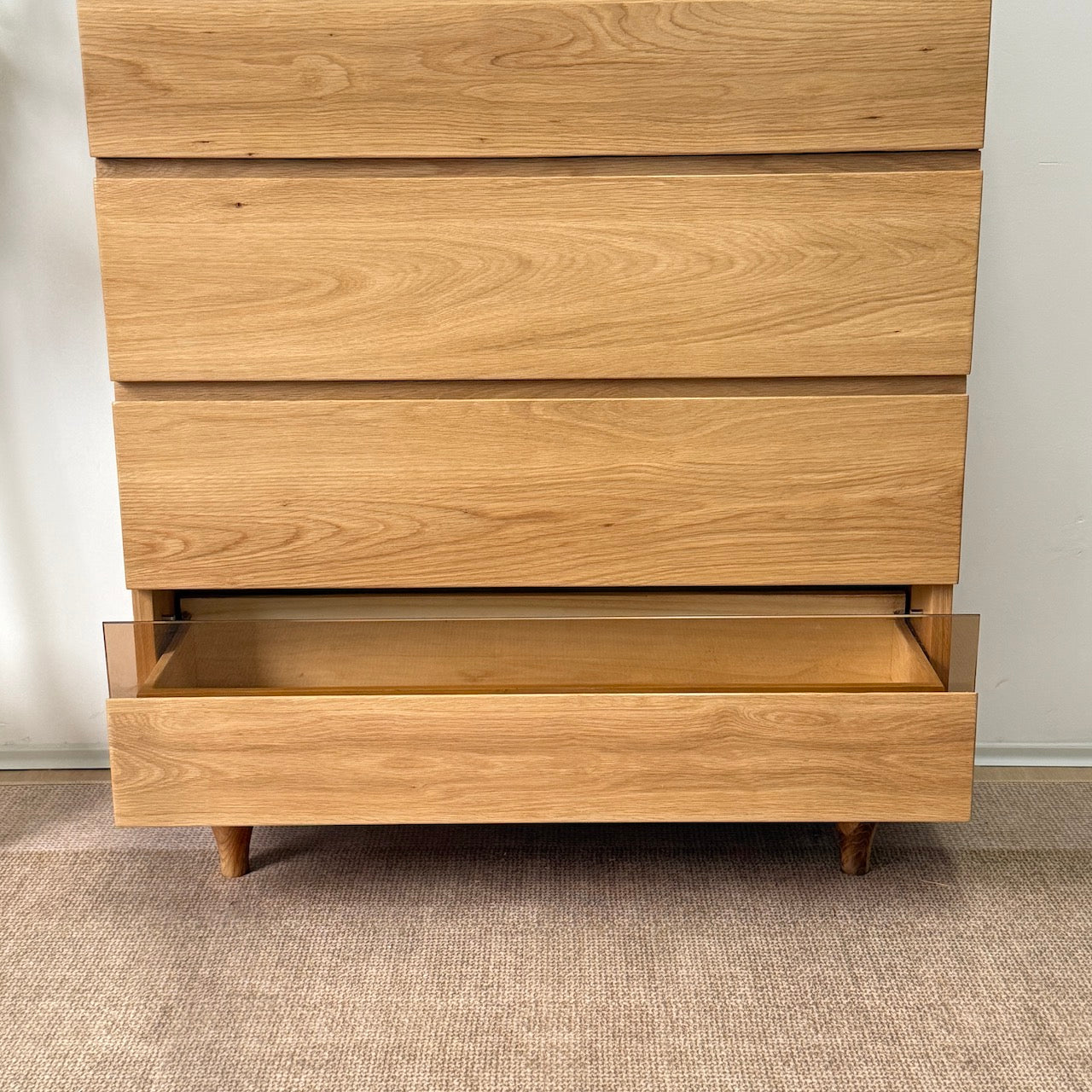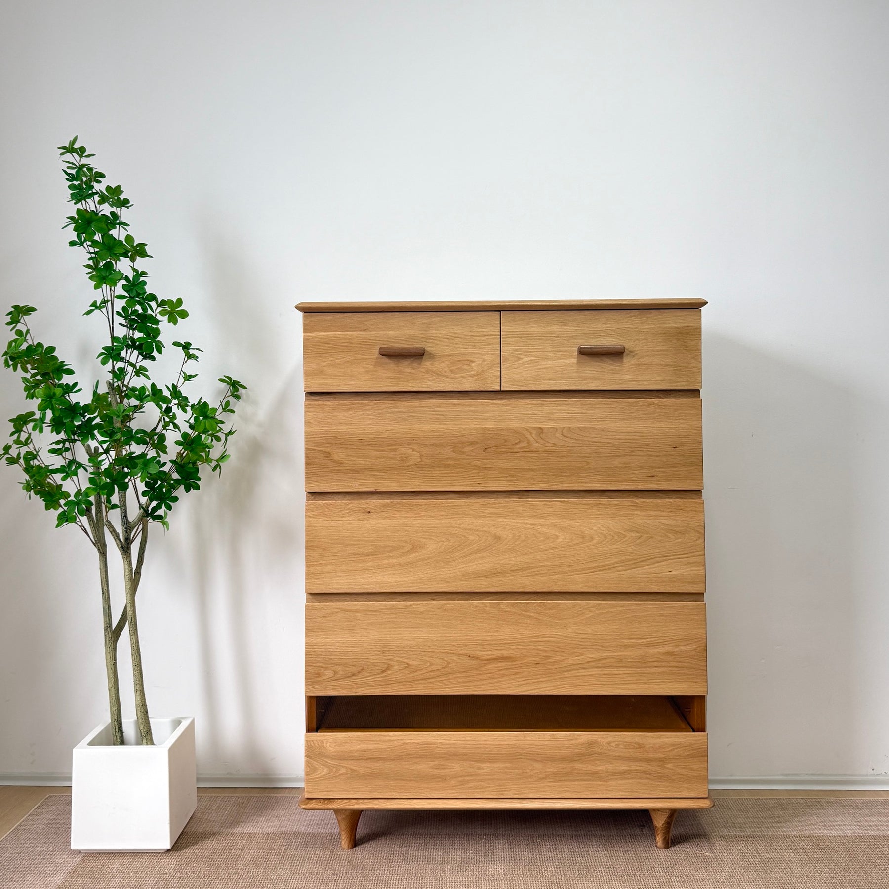 Features: Made of white oak imported from North America. This chest of drawers boasts a simple, modern design that complements any home. Crafted from high-quality wood, it's durable and features a smooth finish. Its multi-layered storage provides ample storage space, helping you organize your belongings and keep your home tidy and organized. Whether placed in a bedroom, living room, or study, it will enhance both beauty and practicality.