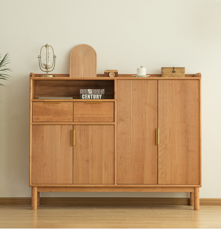 Features: Crafted from imported North American cherry wood, our unique shoe cabinet features elevated side panels for hanging umbrellas and adjustable shelves, offering a thoughtful and thoughtful fit for any shoe storage needs. Exquisite and practical, it's the ideal choice for your home.
