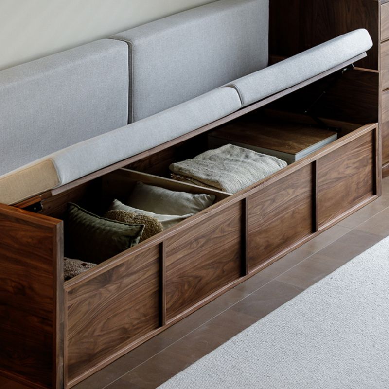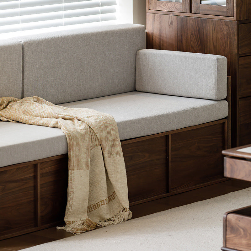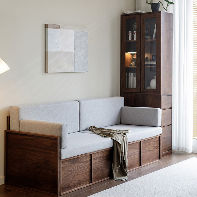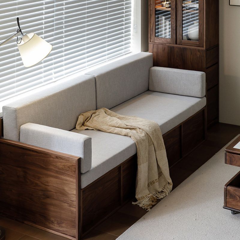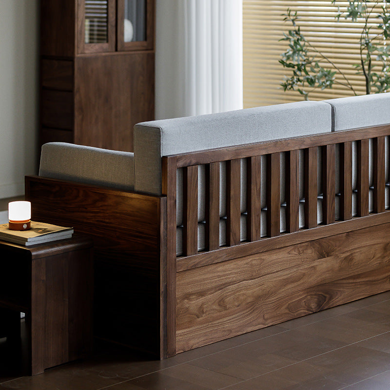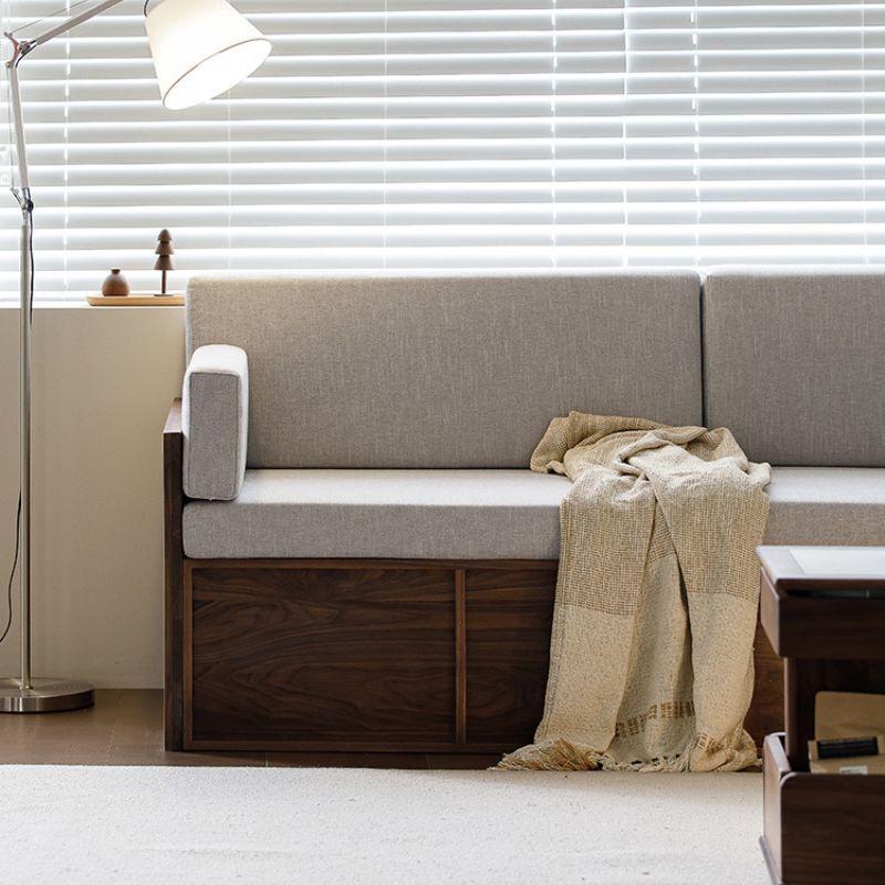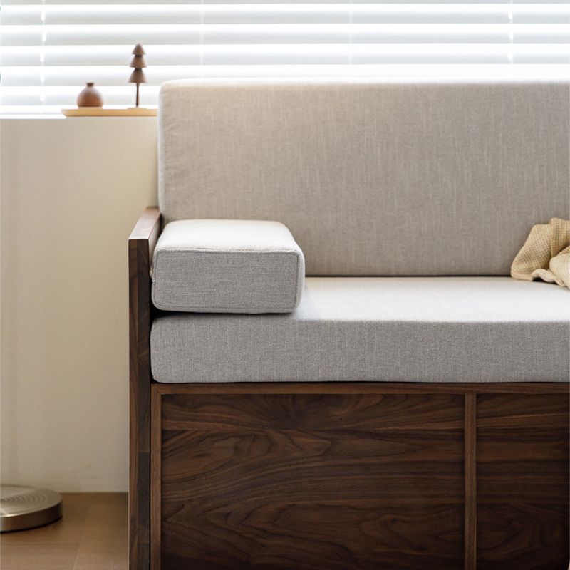 Features: Made of black walnut imported from North America. This sofa features a clever design, combining storage functionality with elegance. Made from durable materials with a natural, textured finish, it boasts multiple internal storage areas for easy organization, adding a touch of clutter to your living room. Whether paired with a modern or traditional style, it exudes sophistication.