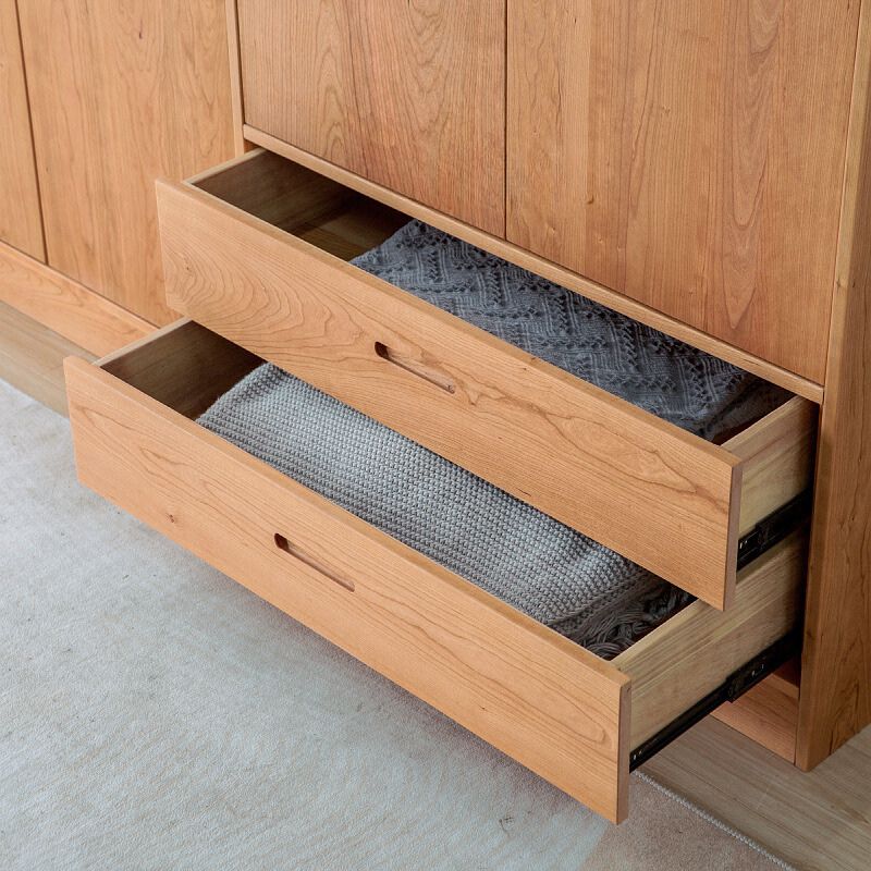Features: Made of cherry wood imported from North America. This wardrobe can be customized to your needs, with options ranging from two to five doors to suit different space and storage requirements. Its durable construction, minimalist and stylish design, and flexible interior layout make it easy to store clothing and accessories.