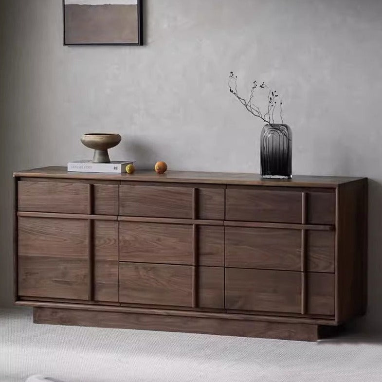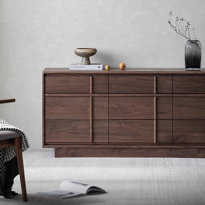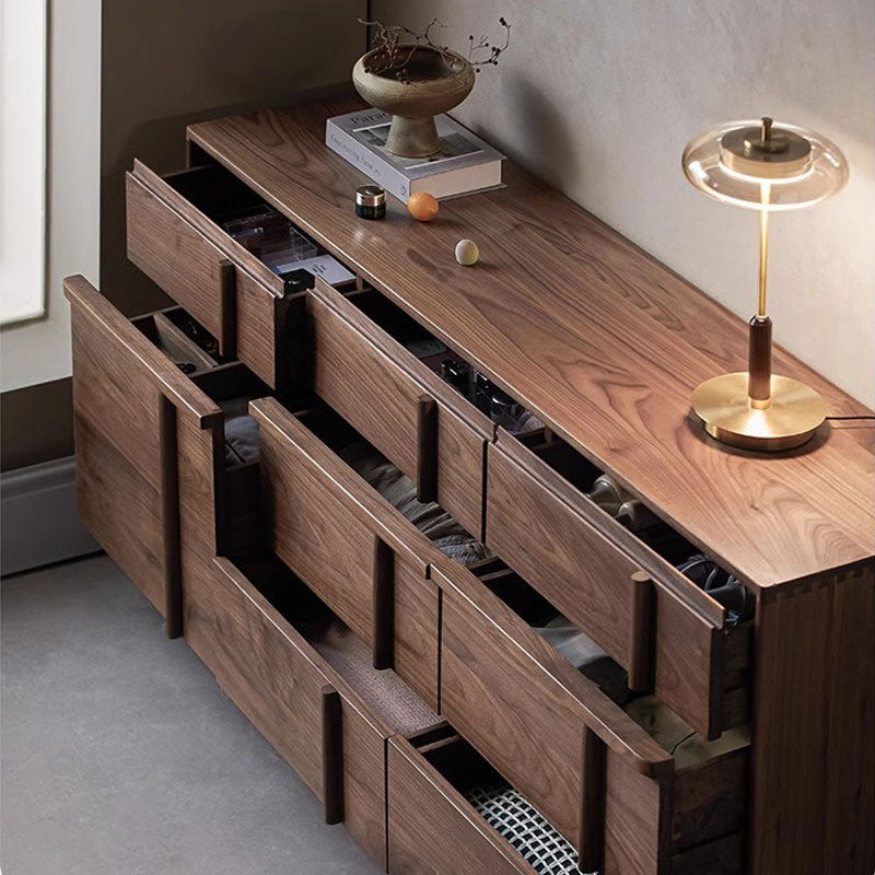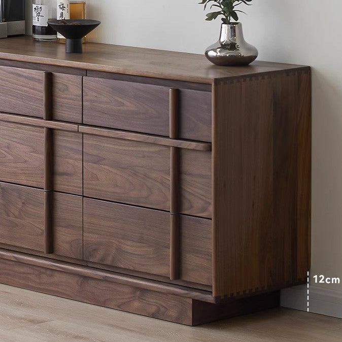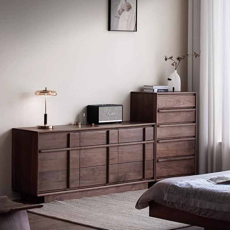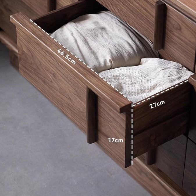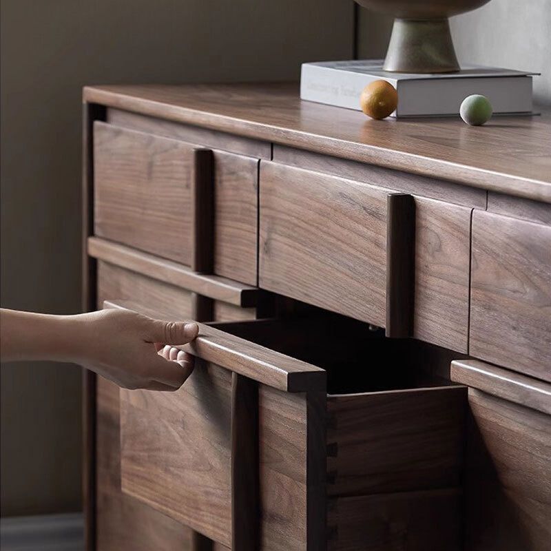 Features: Made of black walnut imported from North America. This vintage-inspired chest of drawers is available in two configurations: horizontal and vertical. Each chest of drawers features solid wood rails for stability and durability. The exquisite wood grain combined with the classic vintage design creates a practical and refined piece that complements any home style, adding an elegant touch to your living space.