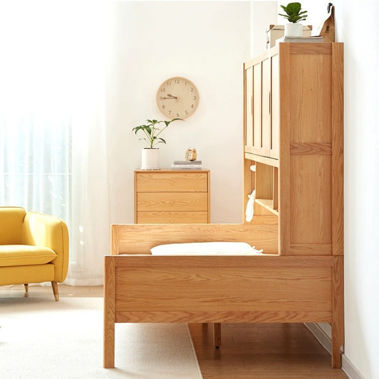 特點:選用北美進口白橡木為材。INSIRONA床連櫃是一款精心設計的實木床和收納櫃組合,具備高品質和時尚的外觀。床腳使用優質實木打造,為您提供堅固的支撐和耐久性。同時,床底還預留了踢腳線空間,讓您可以輕鬆安裝。櫃內有可調整高度的隔板,以滿足您的不同收納需求。INSIRONA床連櫃可為您的臥室帶來絕佳的舒適性和實用性。