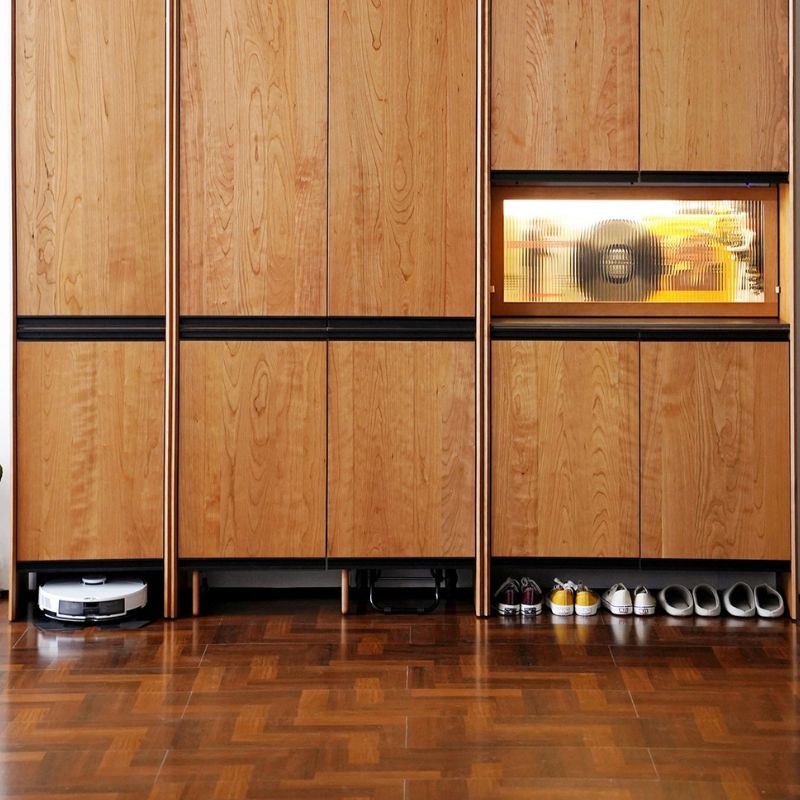 特點:選用北美進口櫻桃木為材。C字櫃設計簡約俐落,適合客廳或玄關作鞋櫃及收納使用。開放與封閉櫃格結合,方便分類擺放鞋履、雜物及裝飾品。櫃體穩固耐用,線條實用不佔位,提升整體空間整潔度與層次感。
