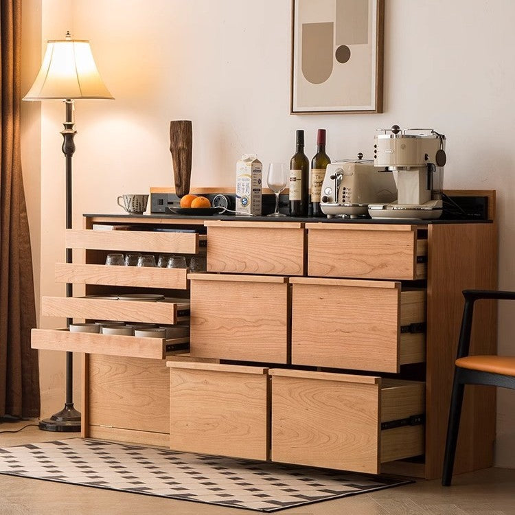 特點:選用北美進口櫻桃木為材。餐邊櫃兼具收納與展示功能,適合擺放於餐廳或開放式空間。櫃體設計實用,方便收納餐具、酒具及日常用品,檯面可作備餐或擺設之用。整體比例均衡,提升用餐空間整潔度與實用性。