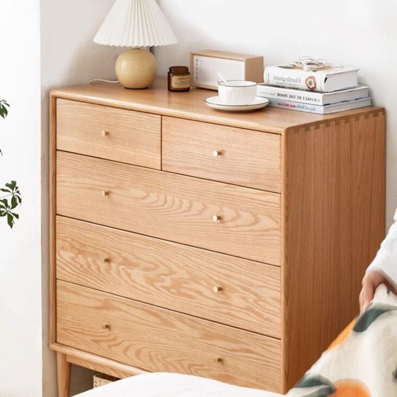 特點:選用北美進口紅橡木為材。這款紅橡木五斗櫃融合傳統與實用。木材紋理深沉自然,經精細處理展現高雅質感。五個抽屜提供實用收納空間,滿足不同需求,同時為室內增添機能性和經典風格,是空間中實用的傢俱之一。
