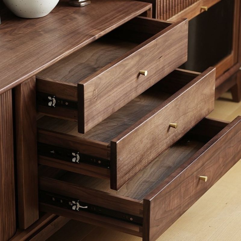 特點:選用北美進口黑胡桃木為材。電視櫃以簡約線條與實用設計打造,寬敞檯面可穩固承放電視,多層收納空間方便擺放影音設備與日常物品。木質紋理質感溫潤,適合多種居家風格,讓客廳更整潔有序。