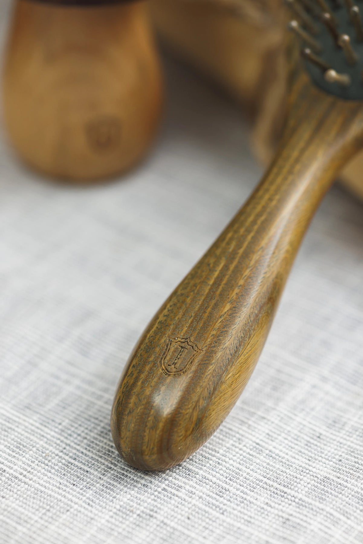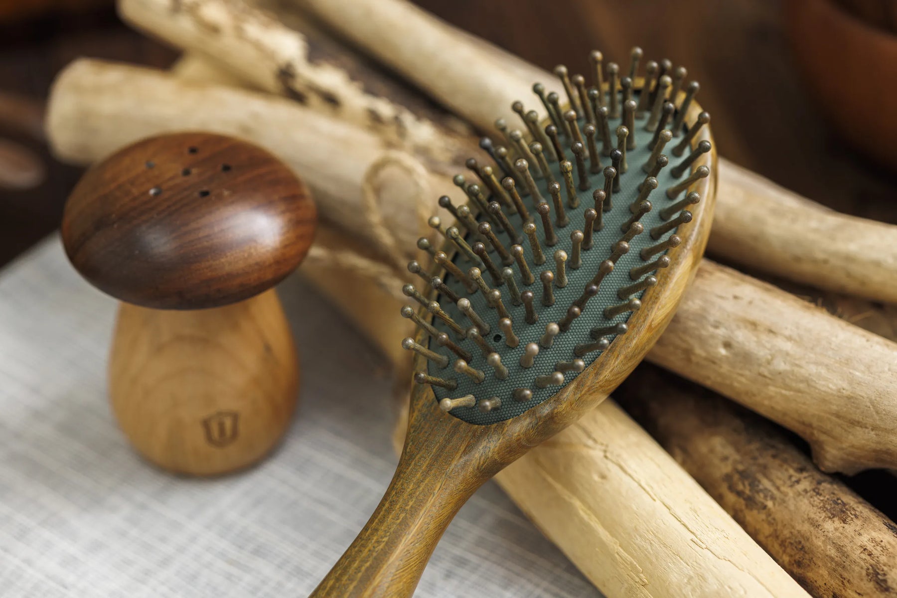 -使用中性洗剂在手掌起泡后,清洁发梳梳针面