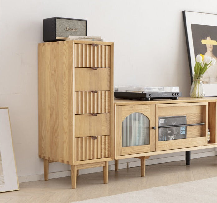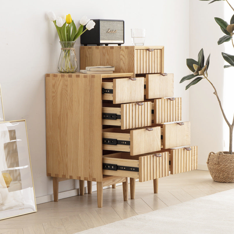 特点:选用北美FAS级进口白蜡木为材。这款白蜡木的四斗柜和五斗柜都是精美的储物家具,带有波纹柜桶的设计,为其增添了独特的风格。这些柜子以高品质的白蜡木材料制成,呈现出温暖的色调和自然的木纹纹理。它们提供了充足的收纳空间,方便整理和储存各种物品,同时为室内增添了一份独特的视觉吸引力。无论您选择四斗柜还是五斗柜,它们都是优雅且实用的家具选择。