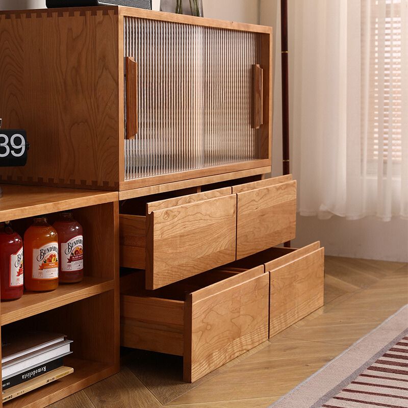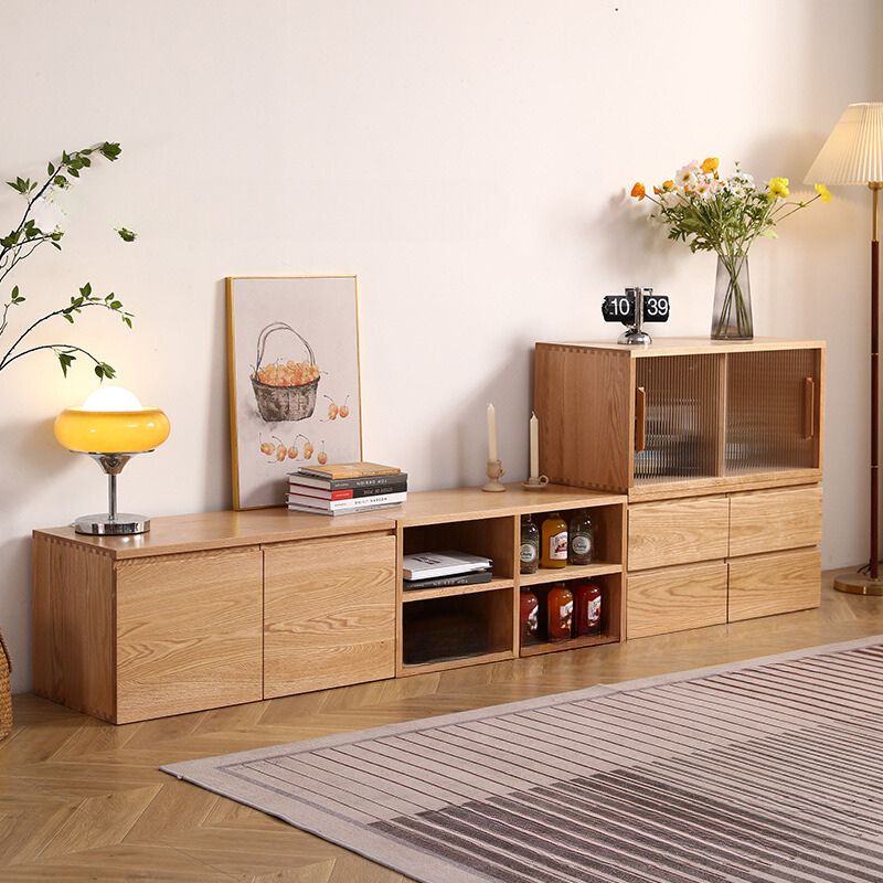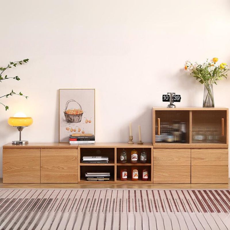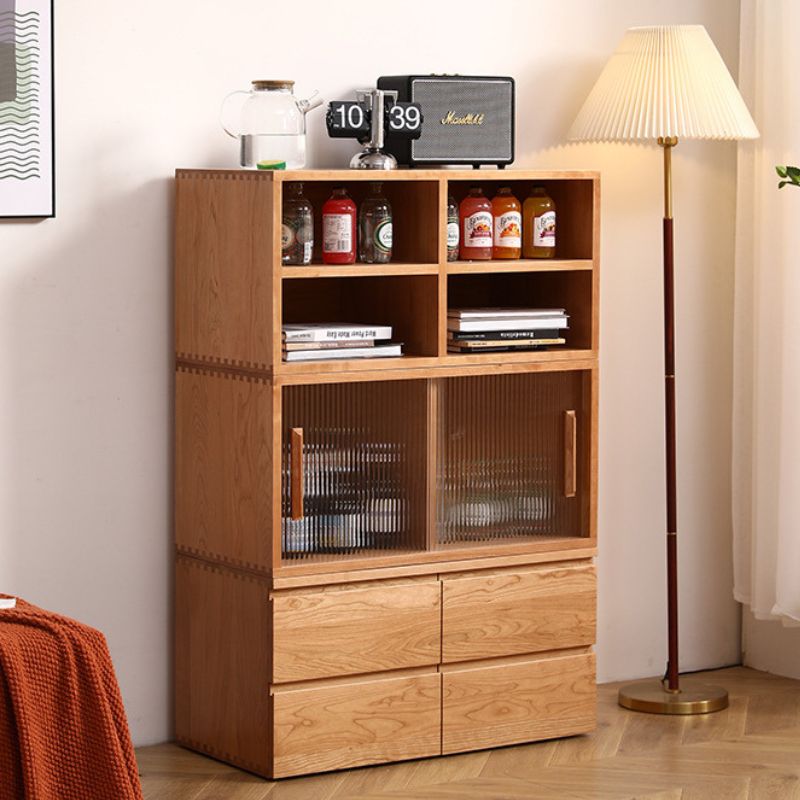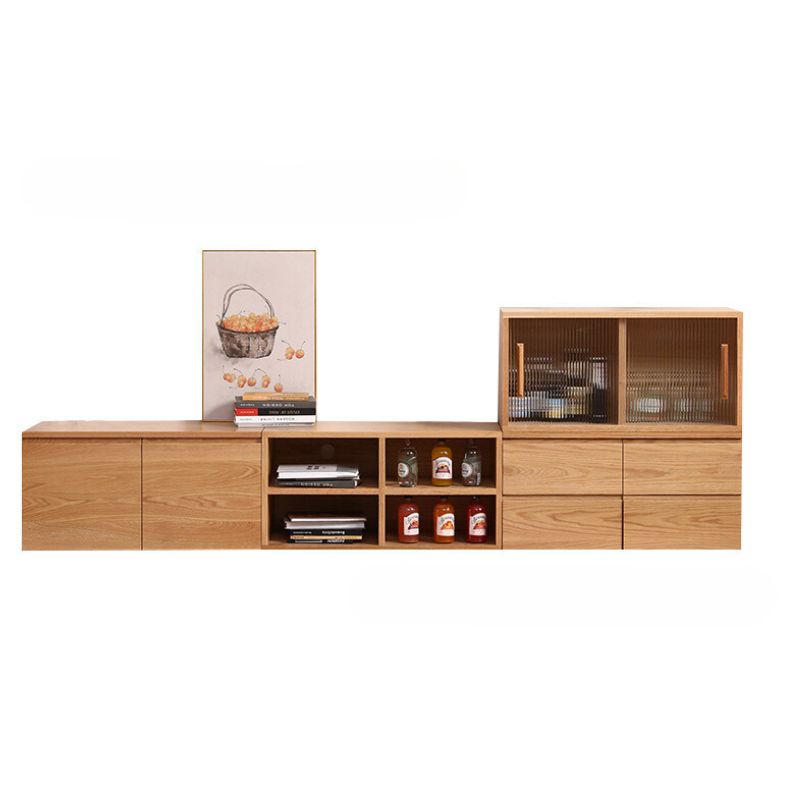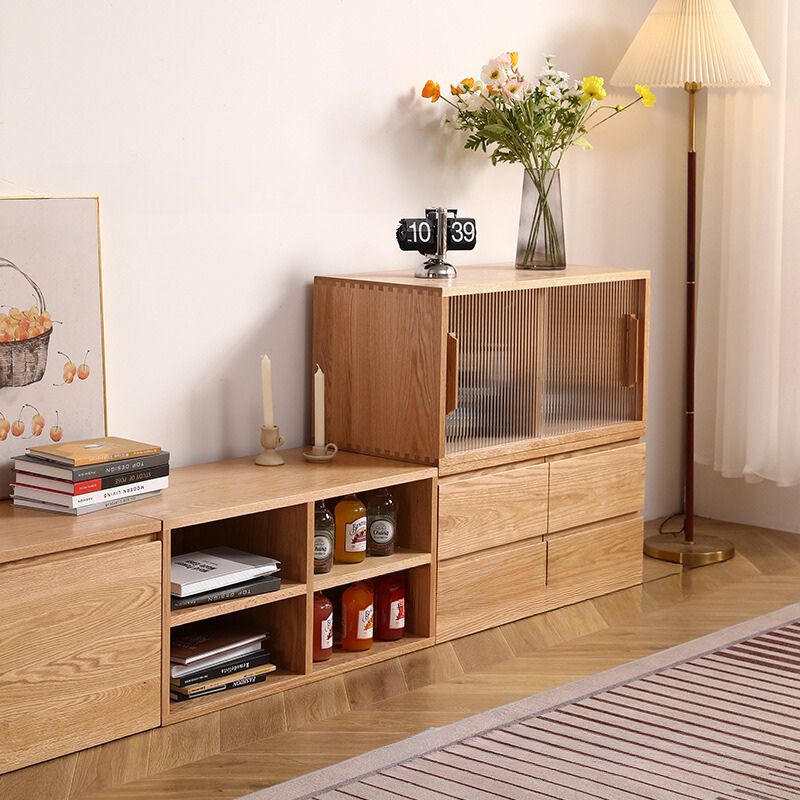 特点:选用北美FAS级进口红橡木为材。这款产品是一套多功能收纳柜组合,共有四种款式可供选择,尺寸均相同,可自由搭配使用。包括四柜桶柜、玻璃趟门柜、双门柜和四格柜,每种柜子均设计精美,提供多样化的收纳选择,适合各种家居或办公环境使用。