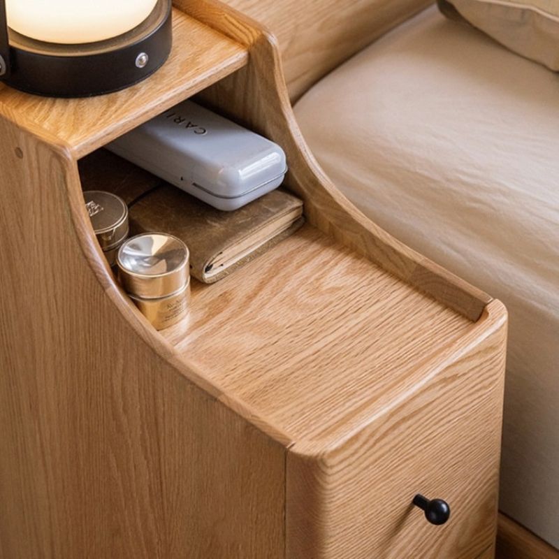 特點:選用北美進口紅橡木為材。這款窄身床頭櫃專為小空間設計,外型纖薄不佔位但收納實用。設有抽屜或開放層架,可整齊擺放書籍、眼鏡或日常用品。結構穩固、質感簡約,輕鬆融入不同臥室風格。
