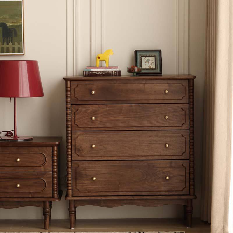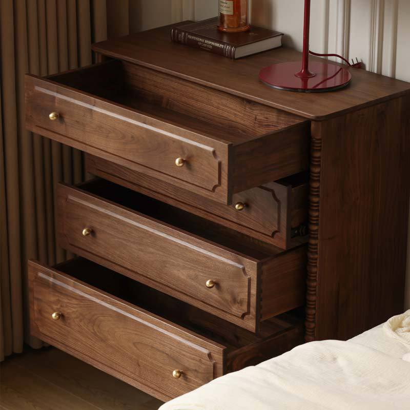 特點:選用北美進口黑胡桃木為材。四斗櫃以簡約實用為設計核心,適合臥室、客廳或玄關使用。四個大容量抽屜方便分類收納衣物、小物及文件,保持空間整潔。櫃身線條俐落,搭配穩固結構與耐用材質,是提升家居收納效率的理想選擇。