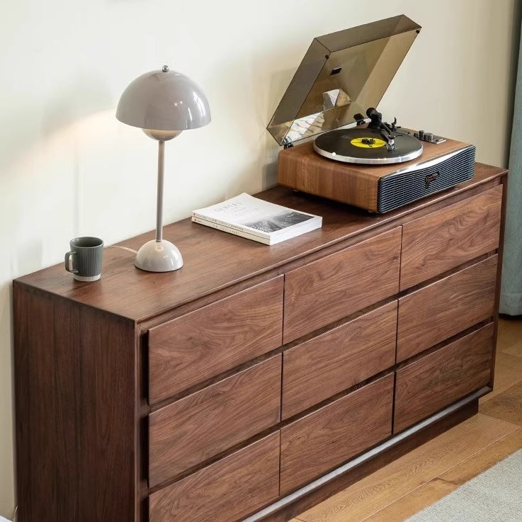 特點:選用北美進口黑胡桃木為材。九斗櫃提供強大收納容量,九個抽屜方便分類衣物、文件及日常小物,讓空間保持整潔有序。櫃身造型簡潔俐落,適合放置在臥室、客廳或玄關。採用穩固耐用的材質製作,結構紮實,是提升家居收納效率的理想之選。