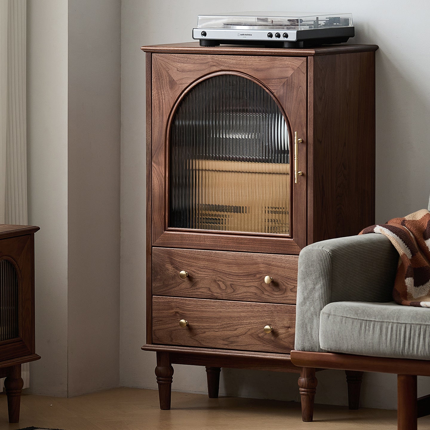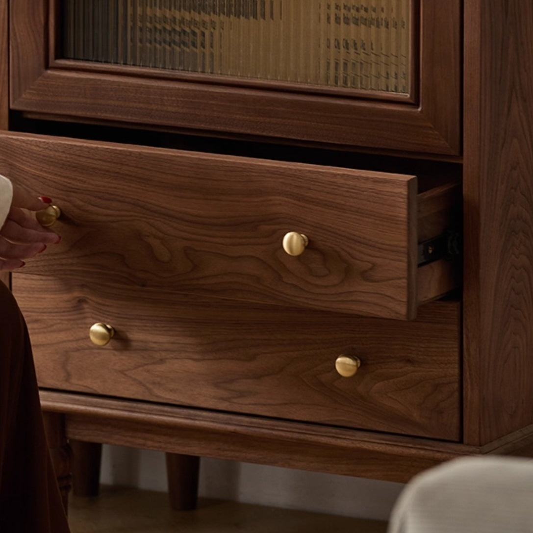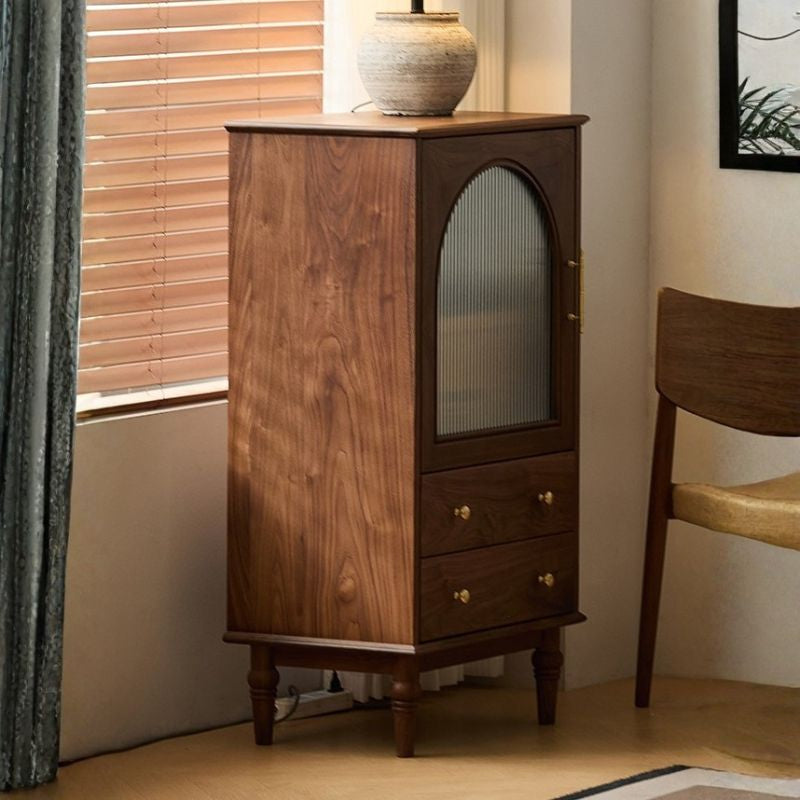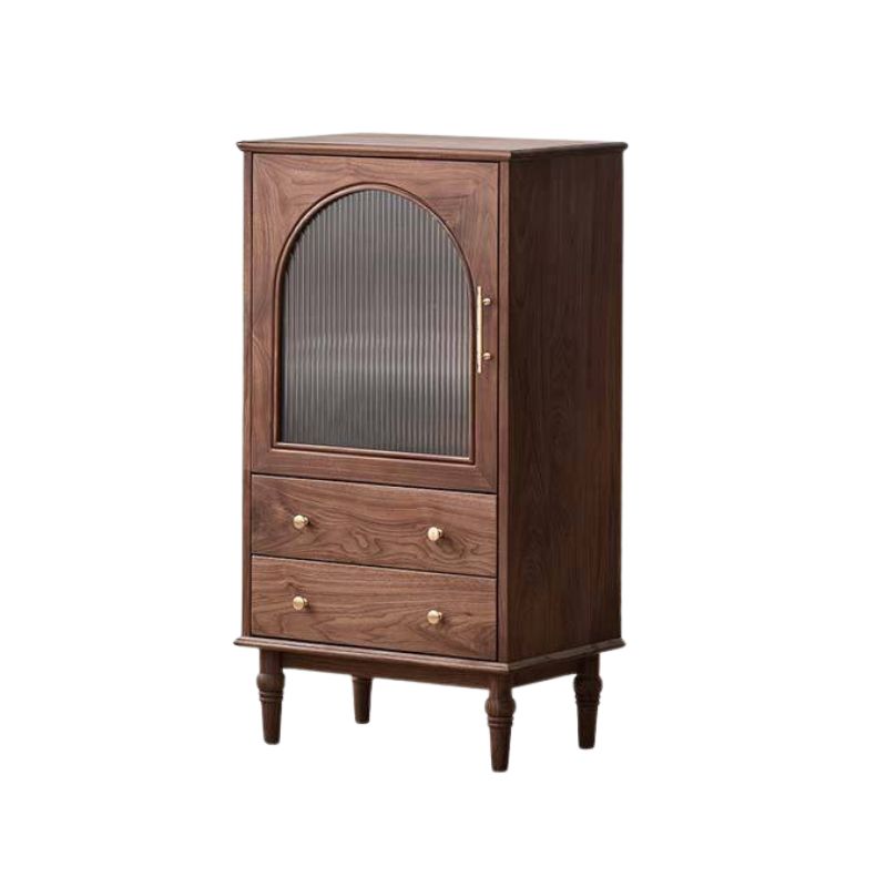 特點:選用北美進口黑胡桃木為材。這款邊櫃以簡約線條結合實用收納,適合擺放茶具、杯組與日常用品。堅固結構搭配柔和色調,為客廳或茶區增添質感,多層空間設計方便分類。
