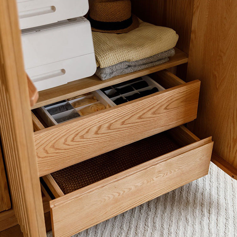 特点:选用北美FAS级进口白橡木为材。这款白橡木衣柜的独特格栅门设计展现简约风格,悬挂区与收纳柜桶巧妙规划,实用又美观。全落地式结构,优雅融入空间,提供完美衣物管理解决方案。持久耐用的材质,为您打造时尚且实用的家居收纳选择。