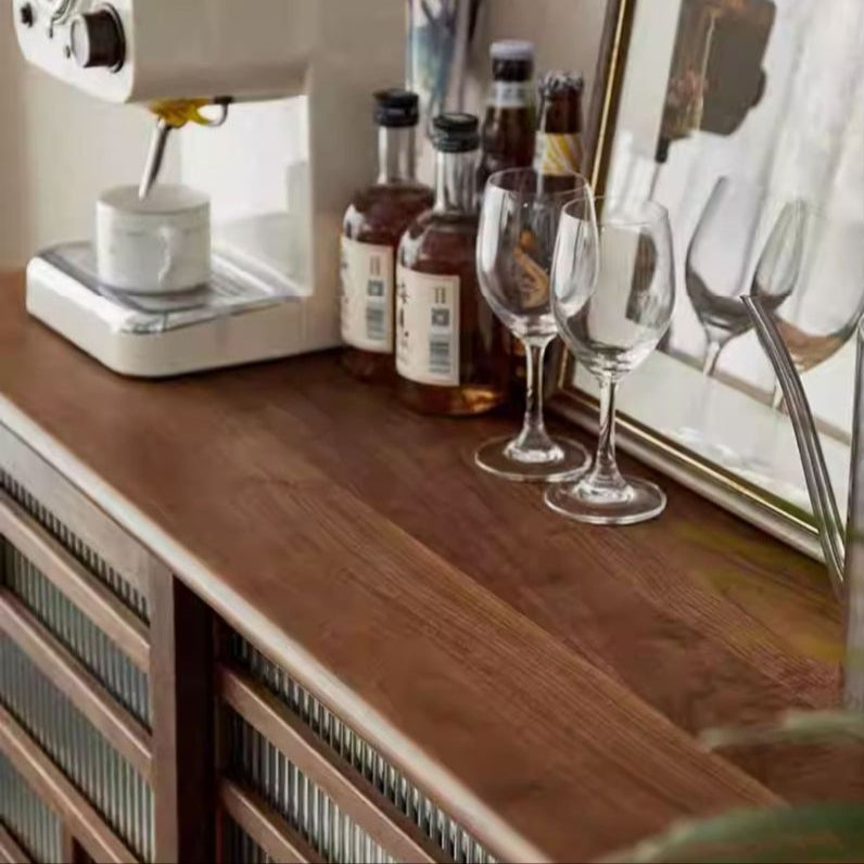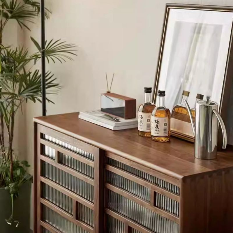 特點:選用北美進口黑胡桃木為材。這款餐邊櫃為您的飯廳提供完美的儲物解決方案。設有隔板,方便收納餐具、酒杯及其他物品,保持空間整潔有序。簡約時尚的設計,適合各種家居風格,既能提升餐廳的裝飾感,又能提供充足的儲物空間,是您家居的理想之選。