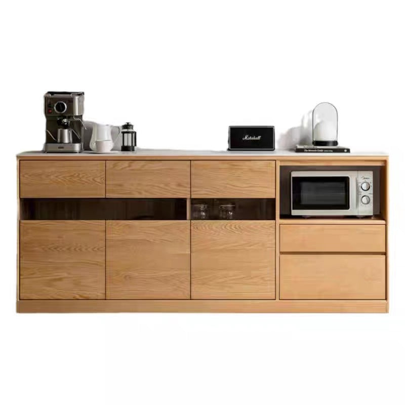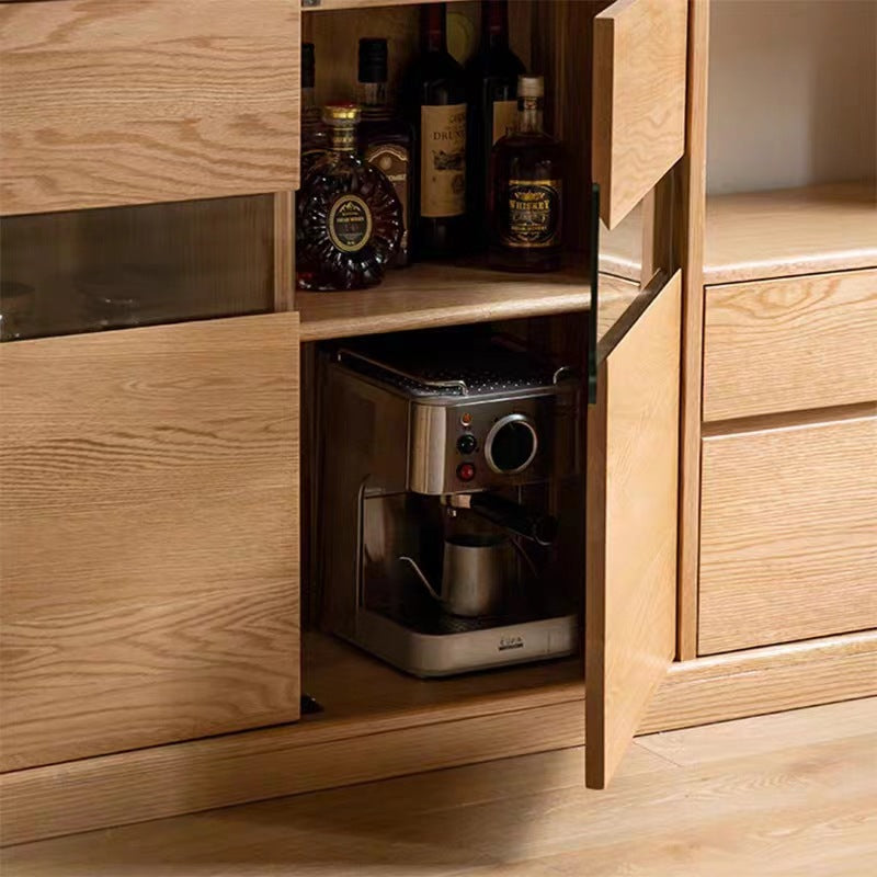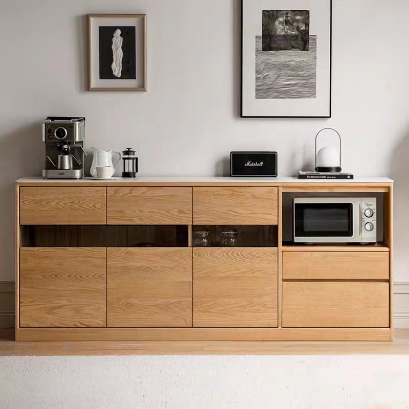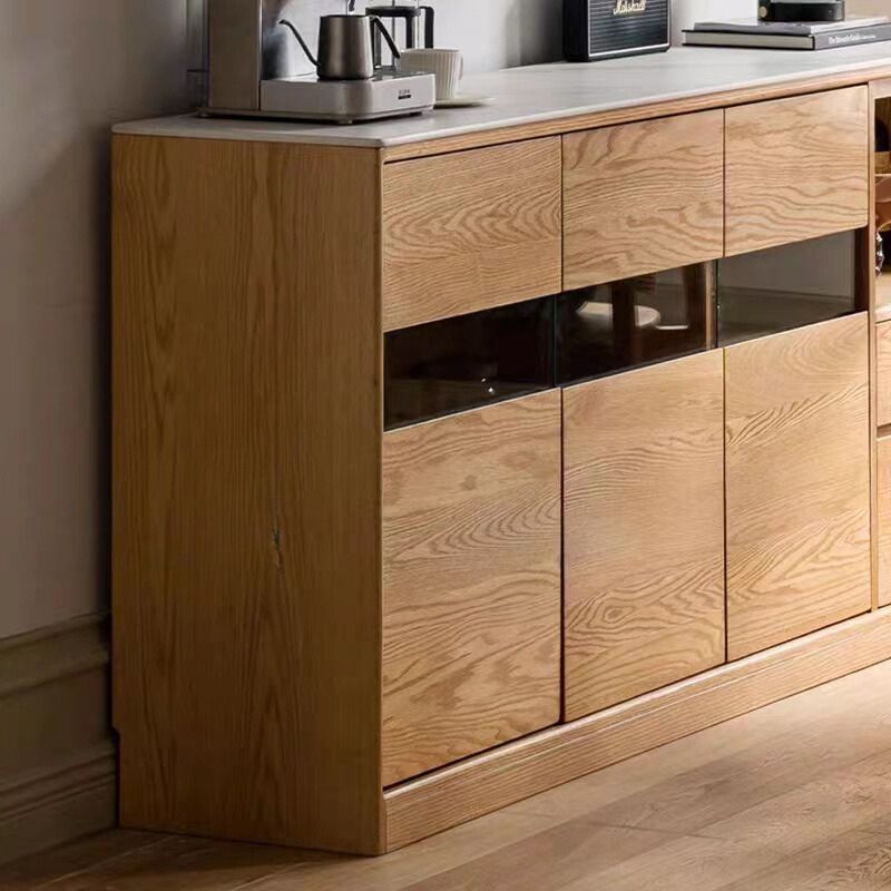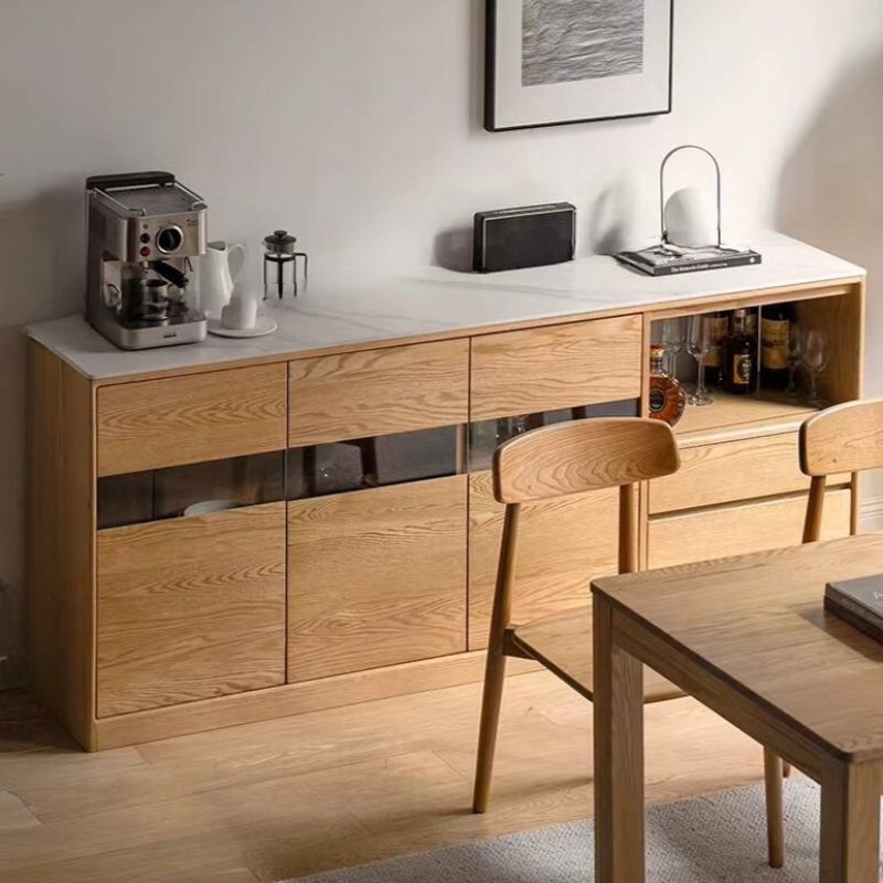 特点:选用北美FAS级进口白橡木为材。品味独特的餐边柜,以岩板面和钢化玻璃打造,质感上乘。实木滑轨设计使柜桶开启轻松顺畅,储物更方便。精致工艺和时尚外观,为您的家居增添品味与风格。