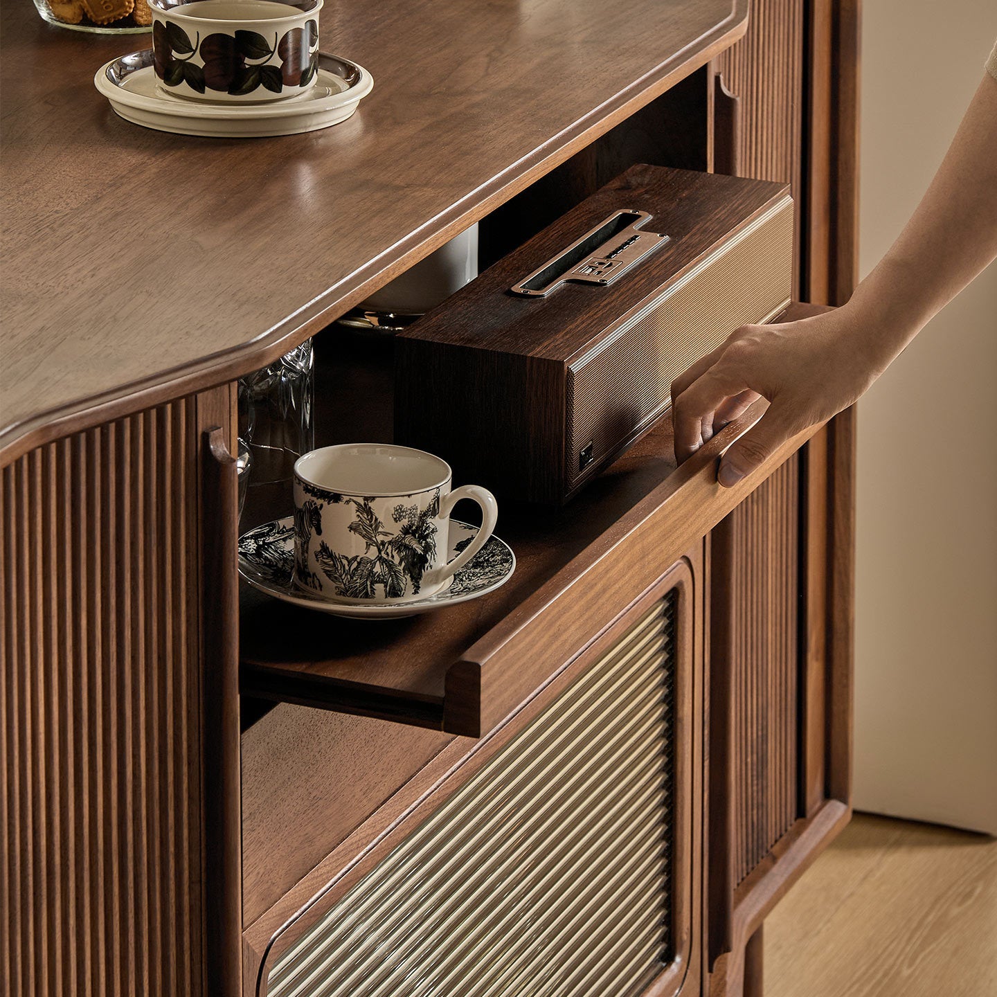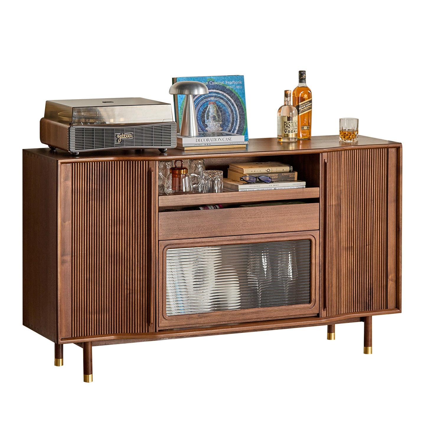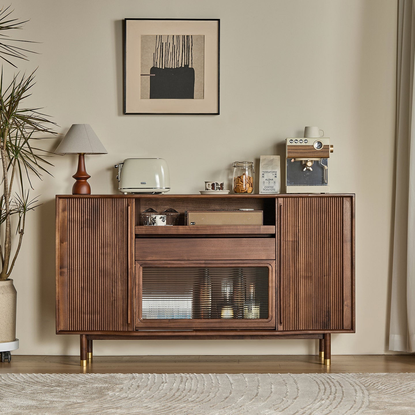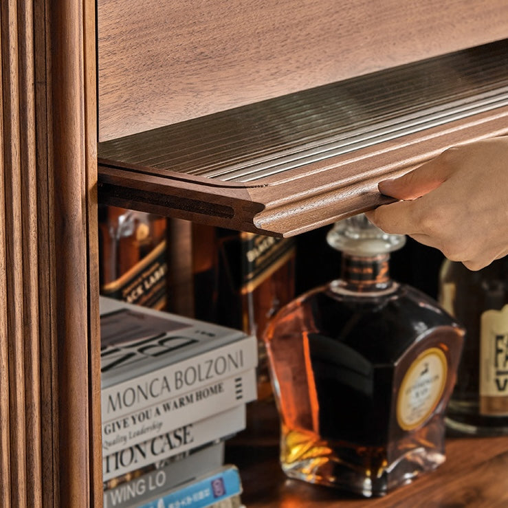 特點:選用北美進口黑胡桃木為材。這款餐邊櫃設計簡約實用,提供充足收納空間,可放置餐具、酒杯與日常用品。堅固穩定的結構搭配時尚外觀,適合餐廳或客廳使用,提升空間整潔與質感。