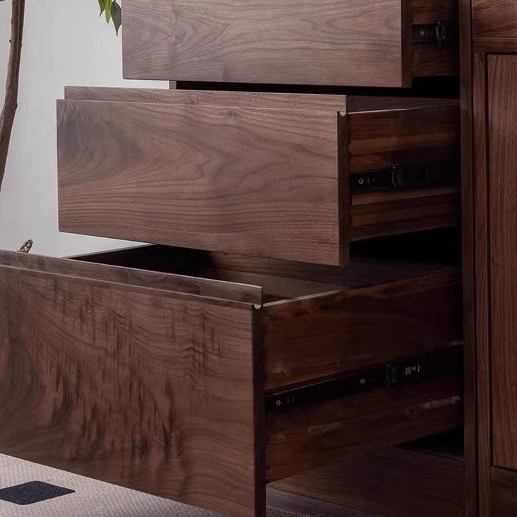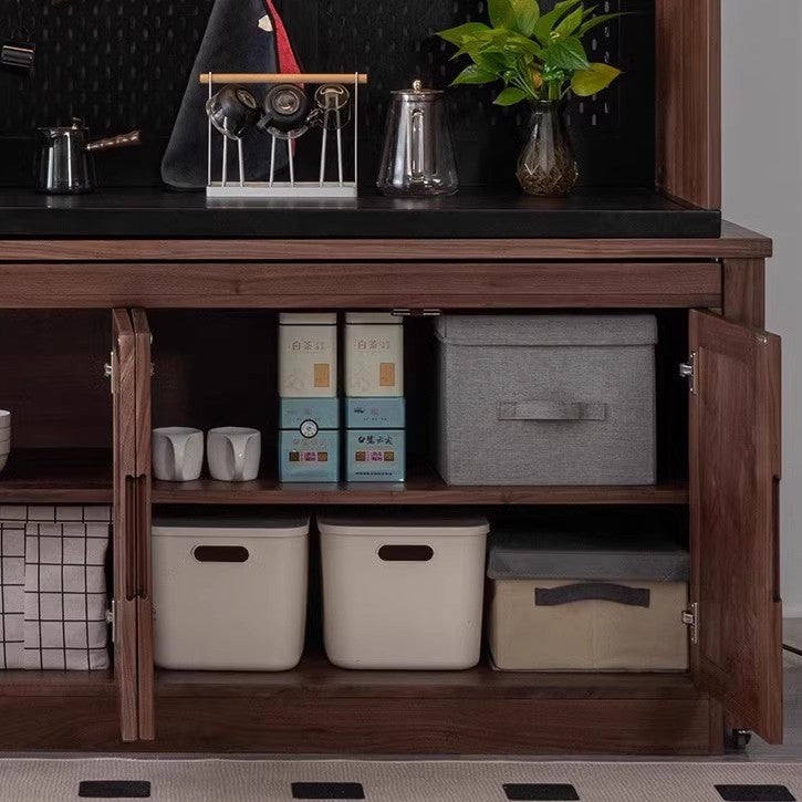 特点:选用北美FAS级进口黑胡桃木为材。这款餐边柜融合了先进的感应灯设计,轻松一按掣就可为您提供便捷的照明解决方案。安全电力插苏随手可得,方便日常使用。大容量抽屉和可拉出的隐藏式餐台设计,为你节省空间和提供实用性。配备有辘设计,轻松移动并灵活摆放。这款柜是现代家居不可或缺的精品餐边柜选择。