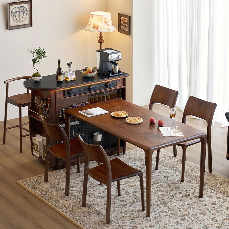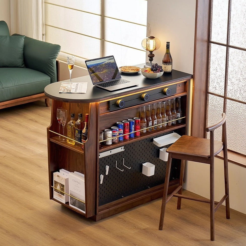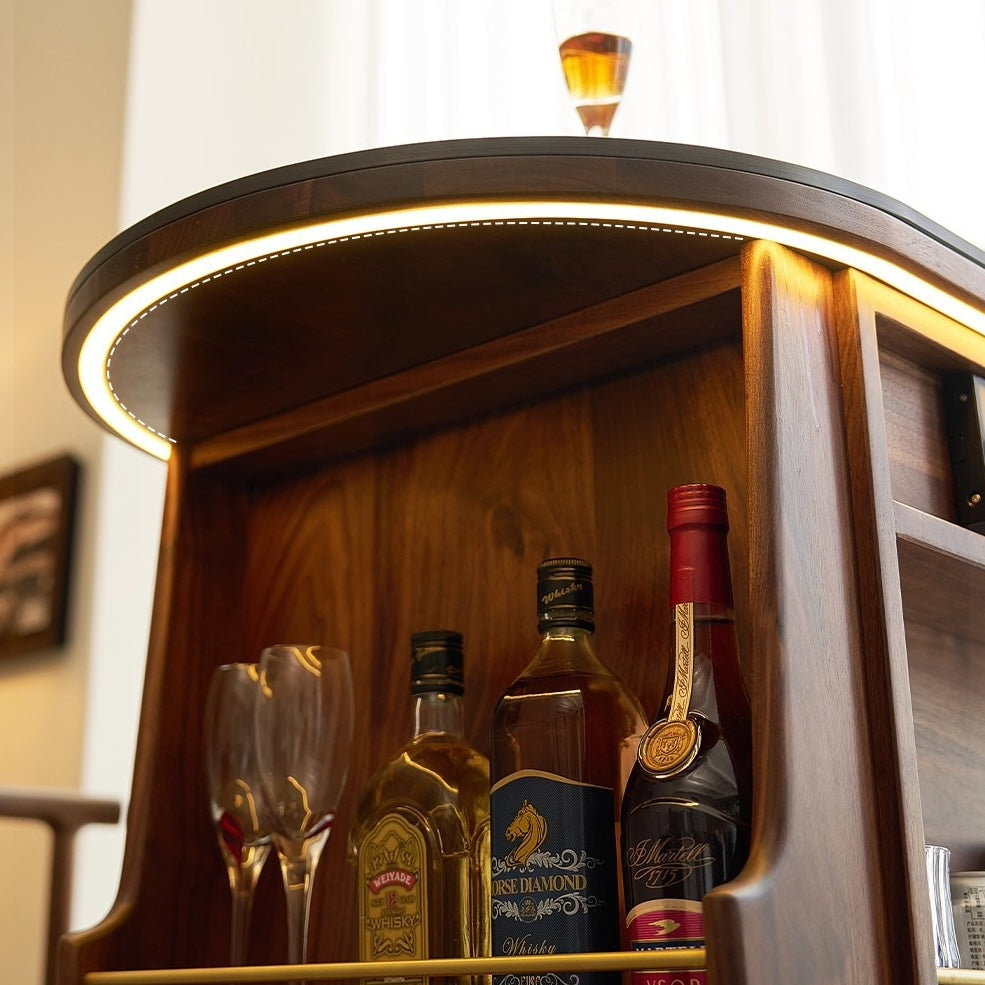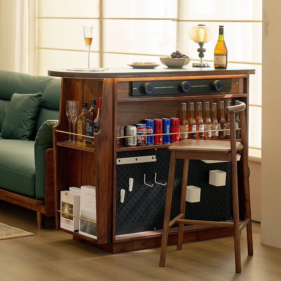 特點:選用北美進口黑胡桃木為材。這款吧台、餐邊櫃兩用設計,兼具收納與餐飲功能,適合客廳或餐廳使用。櫃身設有多層儲物空間,可放餐具、酒或小型電器;配備英式插蘇,方便即插即用,提升生活便利,為居家增添品味。