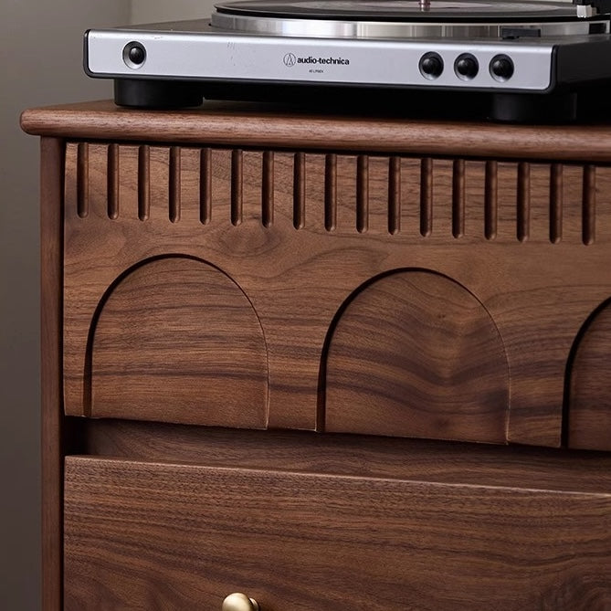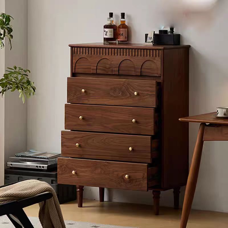 特點:選用北美進口黑胡桃木為材。這款五斗櫃設計簡約實用,採用優質材質打造,堅固耐用。五層抽屜提供充足收納空間,方便整理衣物、文件及日常用品。流暢線條與現代風格完美融合,不僅提升居家收納效率,也為空間增添整潔美感。