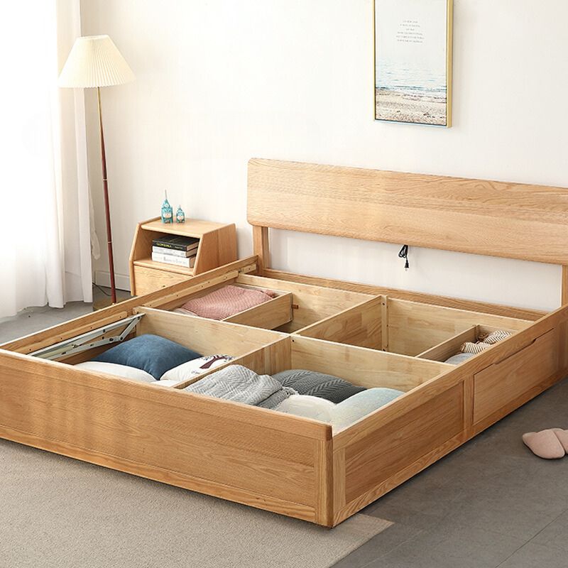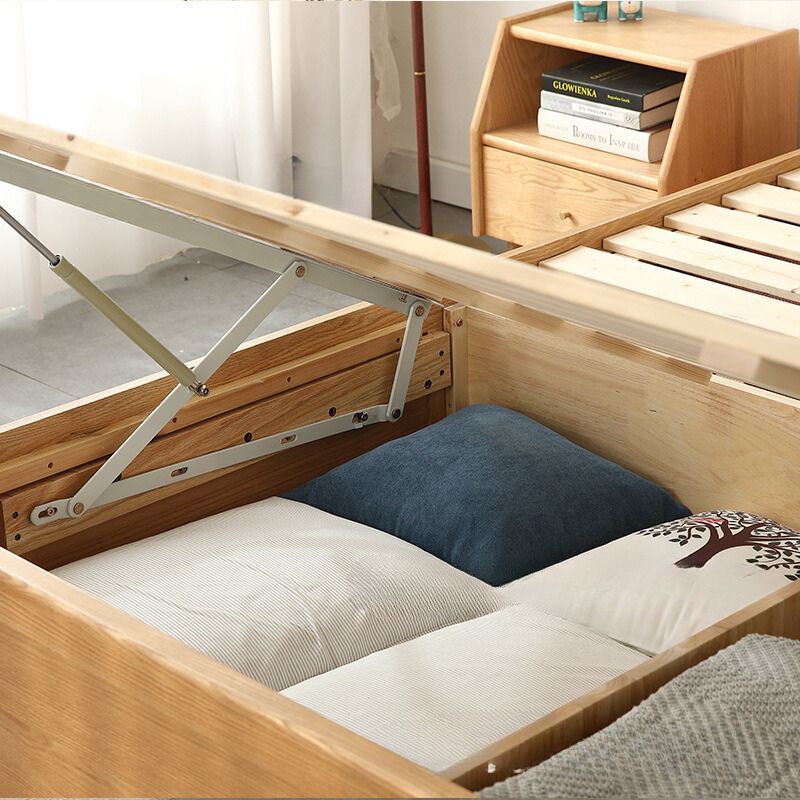 特点:选用北美FAS级进口红橡木为材。这款油压床设计独特,左右各有一个实用的抽屉,方便储物。床头设有置物空间,适合放置书籍、闹钟等日常物品。边角圆滑处理,确保安全,完美融合实用性与时尚感。