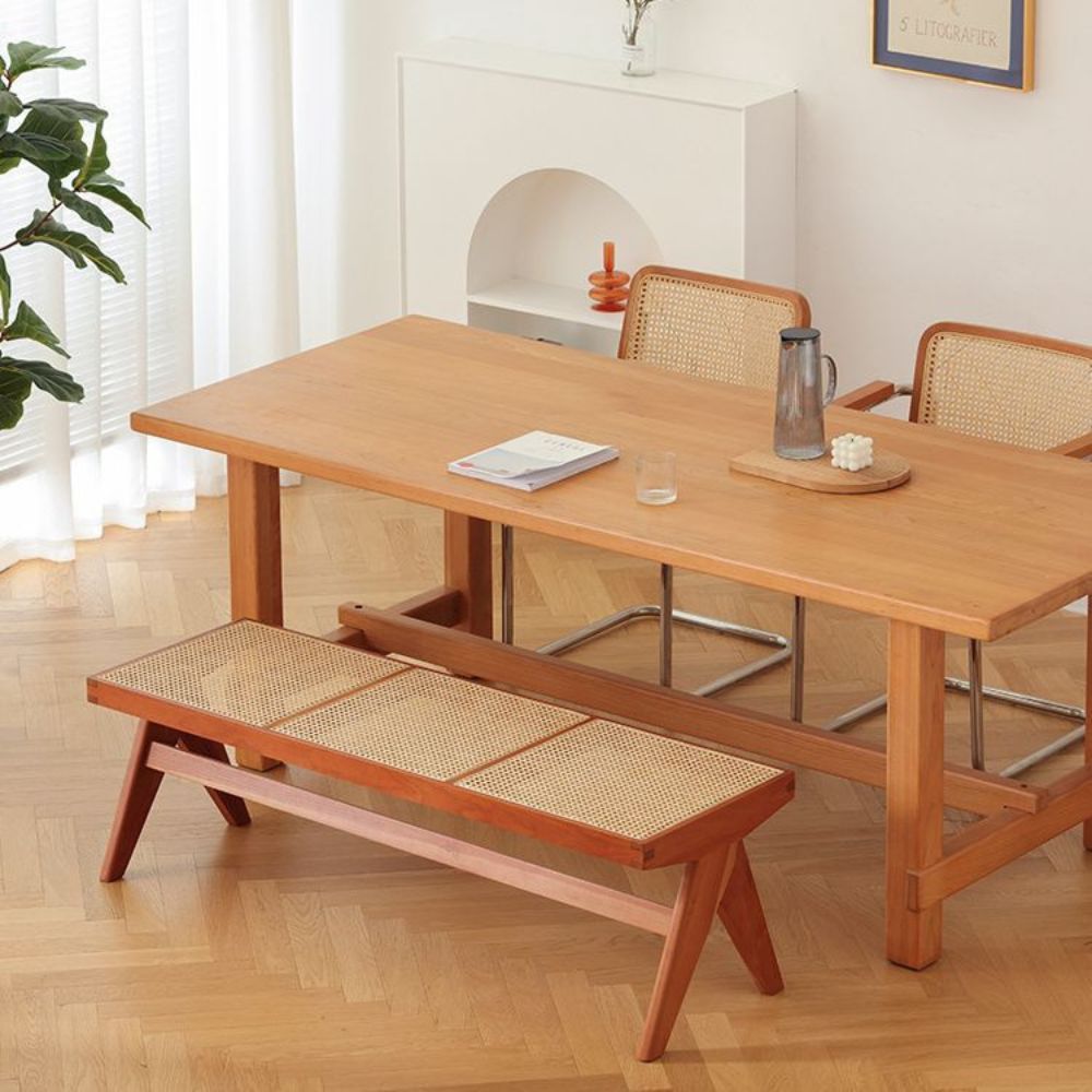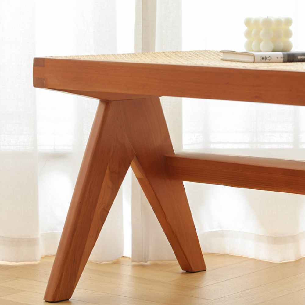 特点:选用北美FAS级进口樱桃木为材。长凳以藤织为座面,质感细腻,颜色浅雅。曲线柔和,线条简约,整体设计温暖舒适,适合放置于庭院或室内角落,增添自然氛围。
