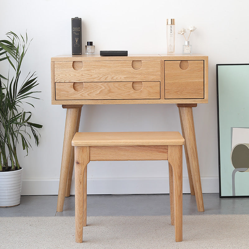 特点:选用北美FAS级进口红橡木为材。 这款梳妆凳采用圆角设计,提升安全性。粗腿结构稳固耐用,能够承受长时间使用。凳面厚实,提供舒适的坐感,适合化妆、换鞋等日常使用。简约风格,无论是放在卧室还是化妆间,都能提升空间的质感与实用性。