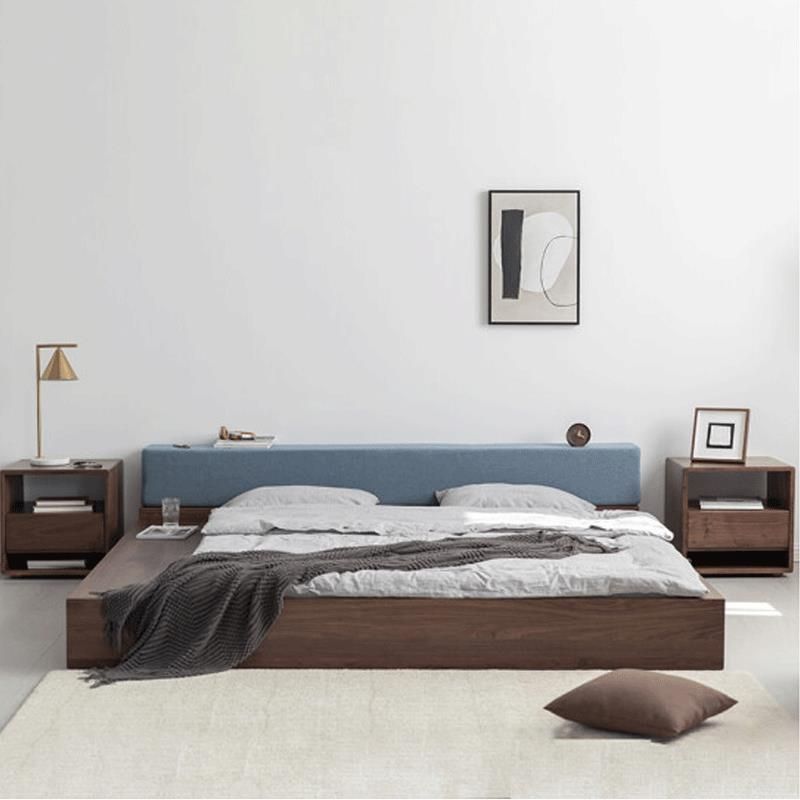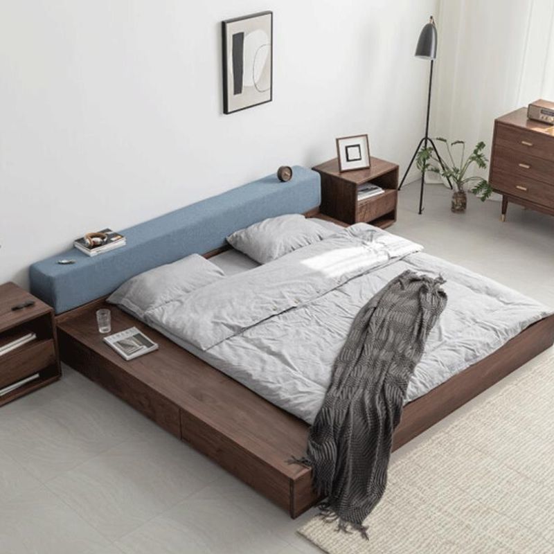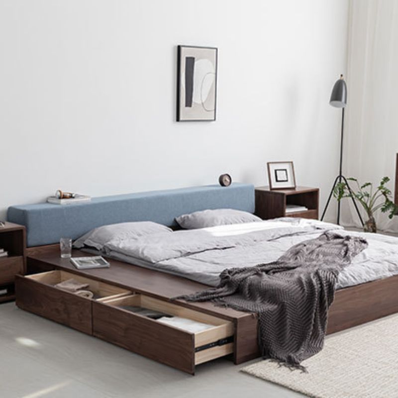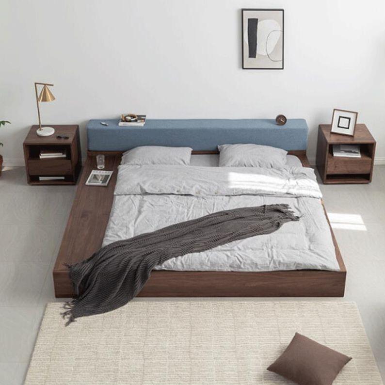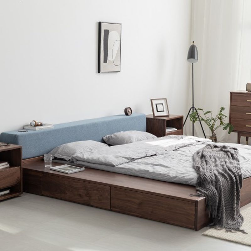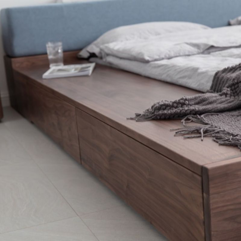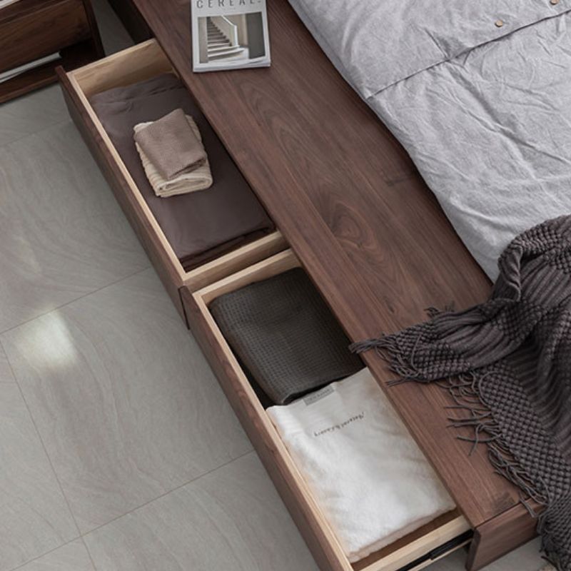特點:選用北美進口黑胡桃木為材。這款地台床設計簡約實用,邊緣寬達40cm,可作為置物空間,方便擺放日常用品。床底配有雙抽屜,增加儲物空間,讓房間更加整潔有序。