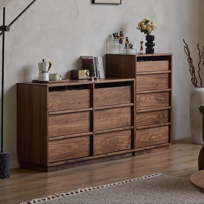 特點:選用北美進口黑胡桃木為材。這款斗櫃設計簡潔而實用,提供多層收納空間,輕鬆分類儲物,讓您的空間井然有序。採用高品質木材製作,堅固耐用,表面光滑易清潔。無論放置在臥室或客廳,都能為您的家居增添一抹現代感。