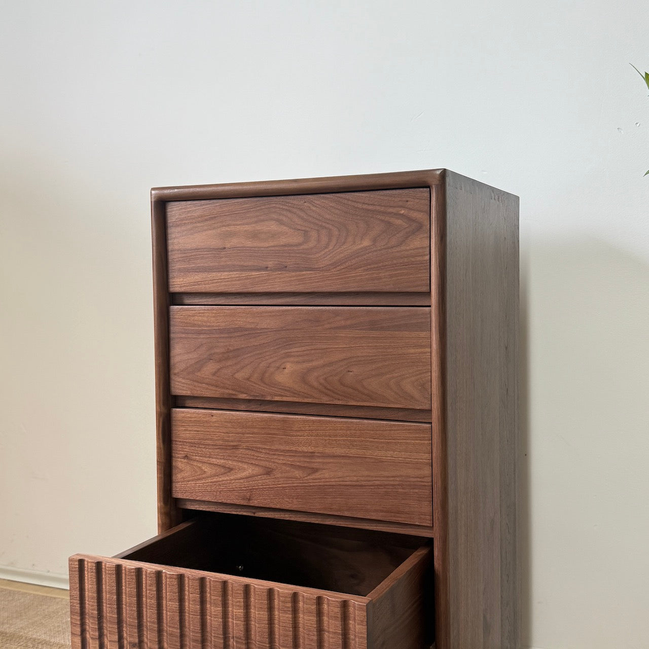 特點:選用北美進口黑胡桃木為材。這款斗櫃融合簡約與實用性,採用高品質木材打造,結構穩固,經久耐用。設計精巧,擁有多層儲物空間,便於整理衣物和雜物,讓家居環境更加整潔有序。表面光滑,易於清潔,適合放置於臥室、客廳或書房,為您的家增添一份現代感與實用價值。