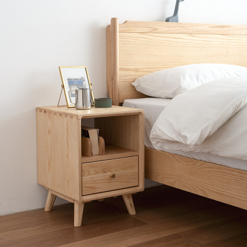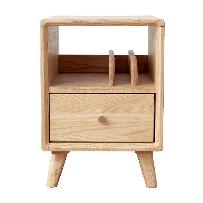 特點:選用北美進口白蠟木為材。這款精緻床頭櫃,特別設計為窄身35cm。它具有簡約的半開放設計,完美搭配現代風格的臥室。大容量抽屜提供了額外的儲物空間,讓您可以輕鬆存放各種物品。